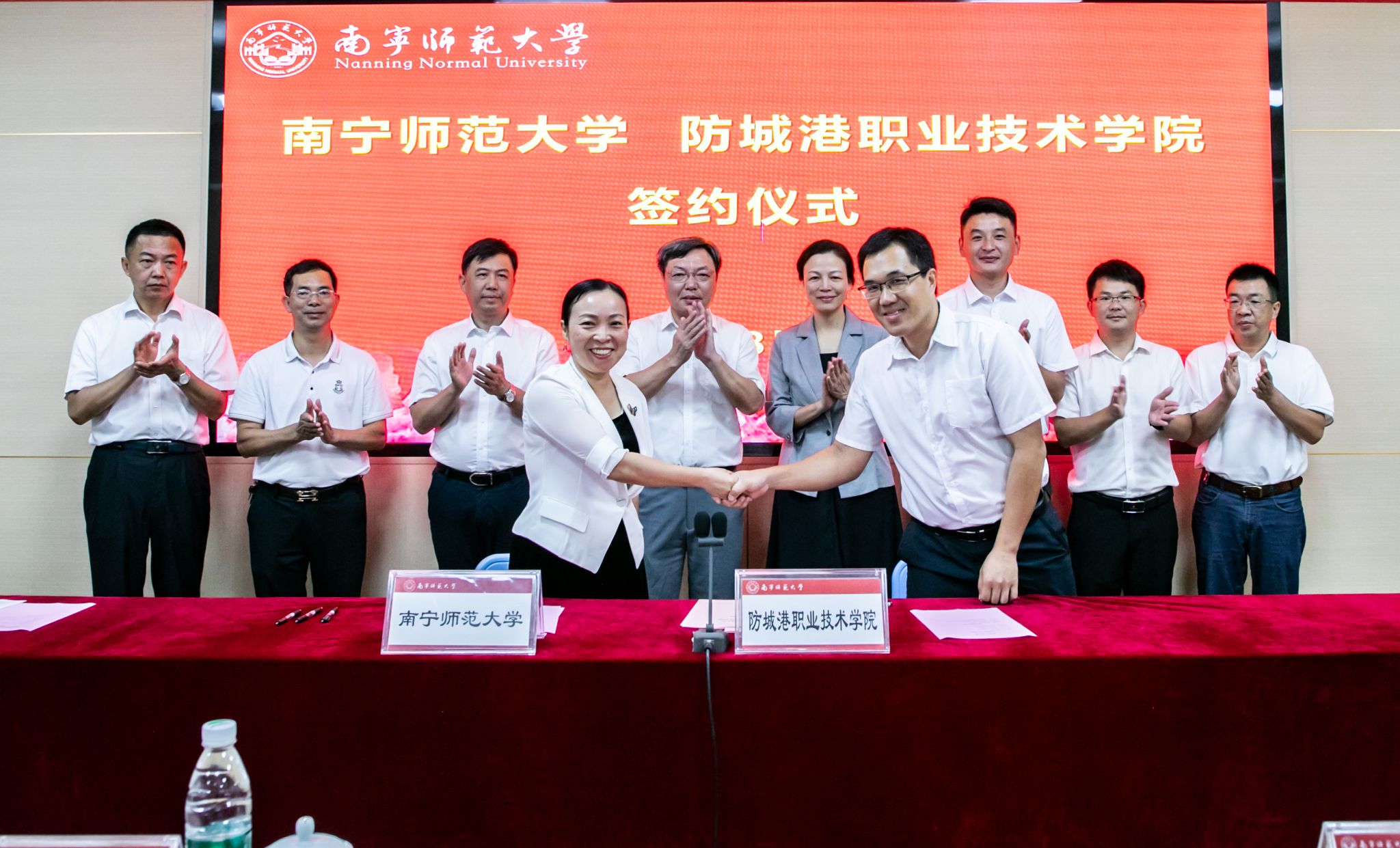近日,beats365与防城港职业技术学院合作协议签约仪式在beats365明秀校区举行。在学校校长李传起和防城港市政协副主席、防城港职业技术学院党委书记陆健文等领导的见证下,学校副校长龙妮娜与防城港职业技术学院副校长易艺代表双方签约。