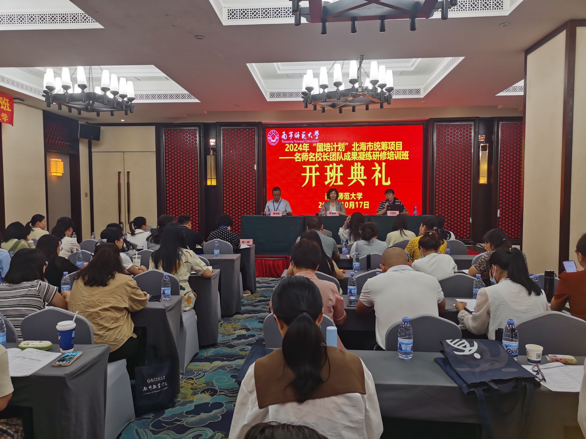 10月17日,由北海市教育局主办、beats365官方唯一承办的2024年“国培计划”北海市统筹项目——名师名校长团队成果凝练研修培训班在南宁顺利开班。北海市教育教学科学研究所所长罗德凤,beats365官方唯一教师教育学院院长王文蓉及学院有关负责人,来自北海市名师名校长名班主任工作室成员、特级教师工作坊成员、“雁阵工程”培养对象及其他优秀骨干教师共60人参加了培训开班典礼。