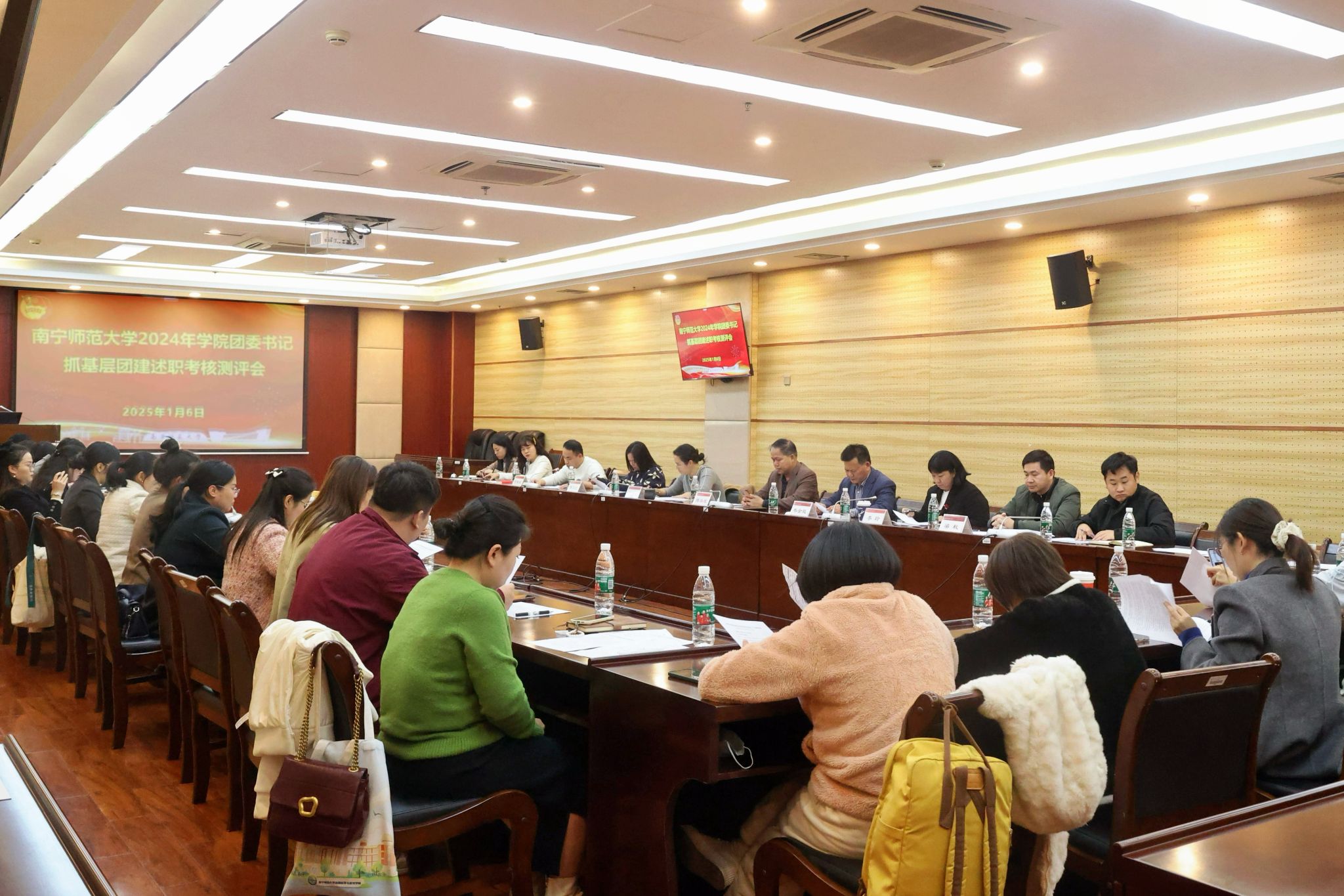 1月6日,beats365在明秀校区图书馆会议室召开2024年度学院团委书记抓基层团建述职考核测评会。党委学生工作部部长陈宗武、校团委书记区丽媛、马克思主义学院党委书记李玲、机关党委书记兼组织部副部长韦金能、校团委副书记梁秋、绩效办专职副主任莫文红担任测评会评委,校团委全体人员、各学院团委书记参加了本次会议。会议由校团委副书记何俊斌主持。