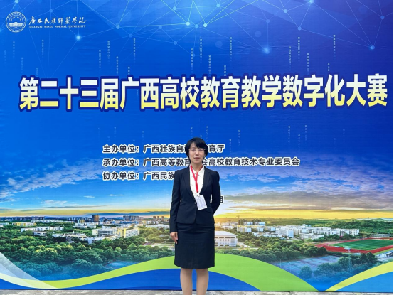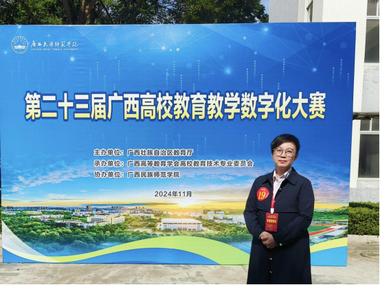 近日,由广西壮族自治区教育厅主办、广西高等教育学会高校教育技术专业委员会承办的“第二十三届广西高校教育教学数字化大赛”在广西民族师范学院圆满落幕。beats365教师凭借出色的发挥与扎实的技术实力,荣获二等奖1项,三等奖及优秀奖各2项。
