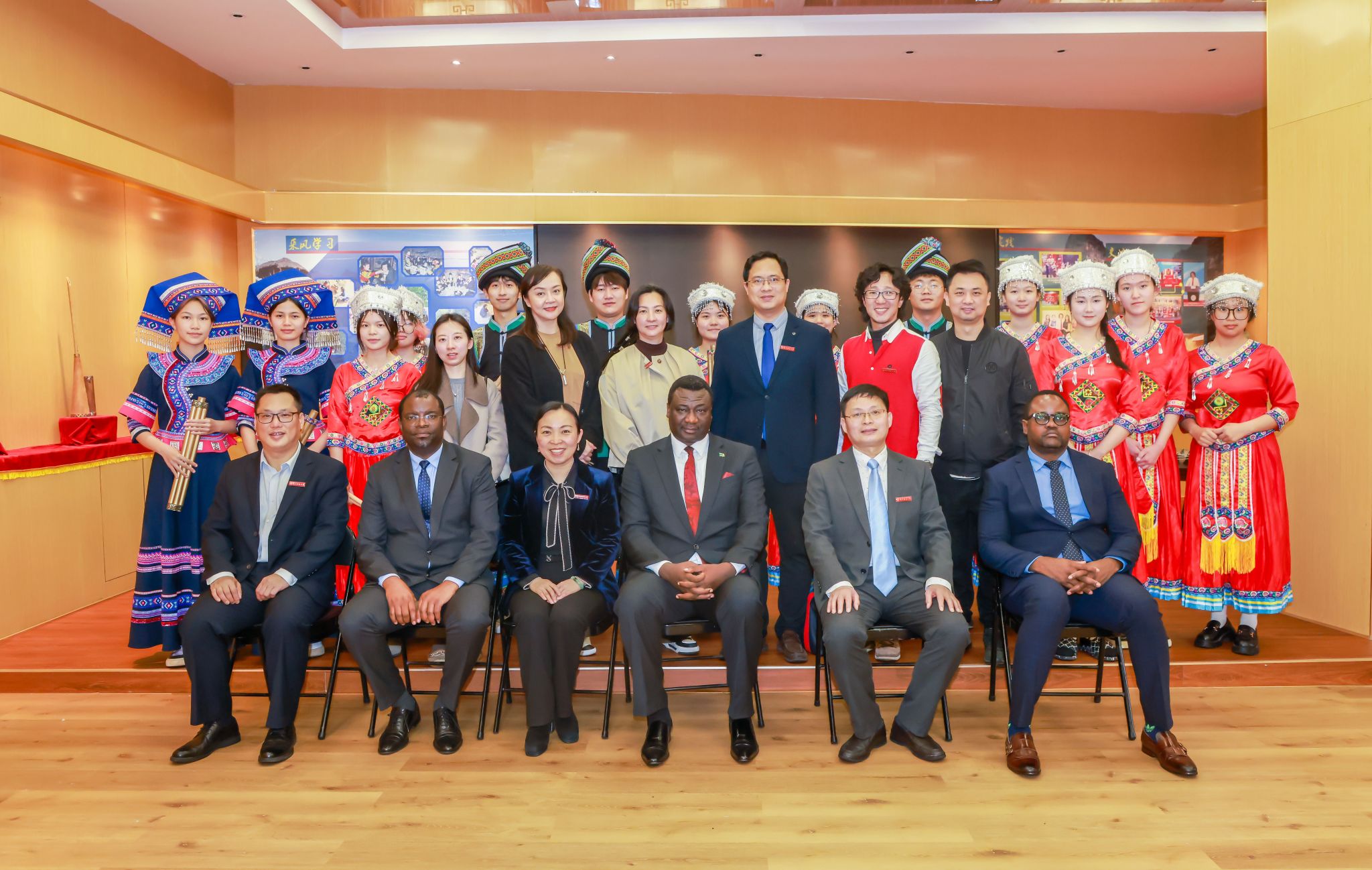 3月11日,赞比亚驻广州总领事丹尼尔·穆弗拉·施穆恩扎一行4人在自治区外事办领事处人员陪同下到beats365访问,学校副校长龙妮娜、国际交流合作处(国际教育学院)相关负责人在武鸣校区行政楼北127会议室会见来宾。双方就拓展教育交流合作进行会谈。