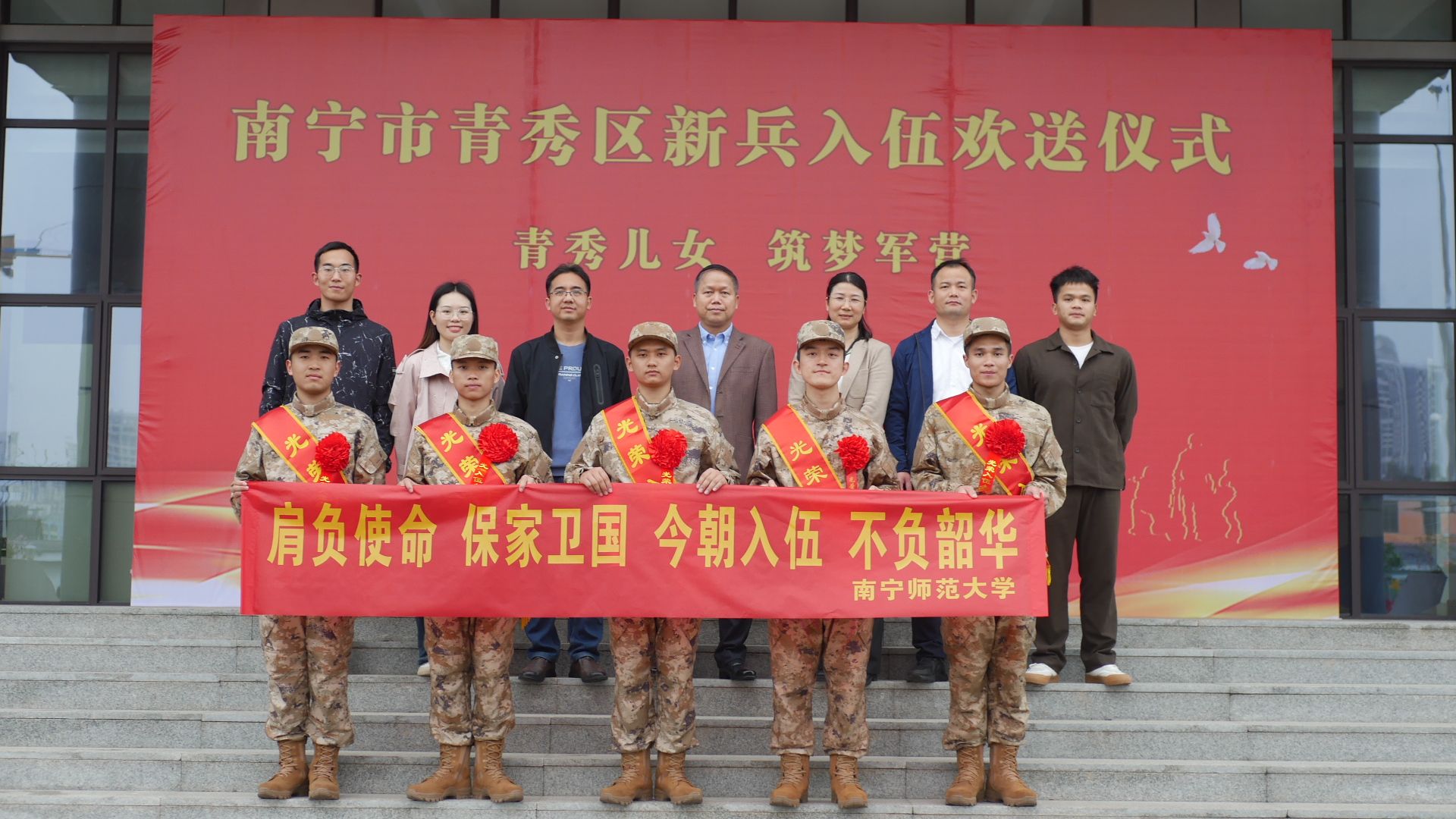 青春热血铸军魂,壮志豪情踏征程。3月13日上午,南宁市青秀区武装部举行了2025年春季新兵欢送会,青秀区区长黄立基、青秀区武装部主要负责人以及片区高校武装部负责人参加了欢送会。本次欢送会beats365共有5名2025届毕业生应征入伍,beats365武装部及相关学院负责人参加了本次新兵欢送会。