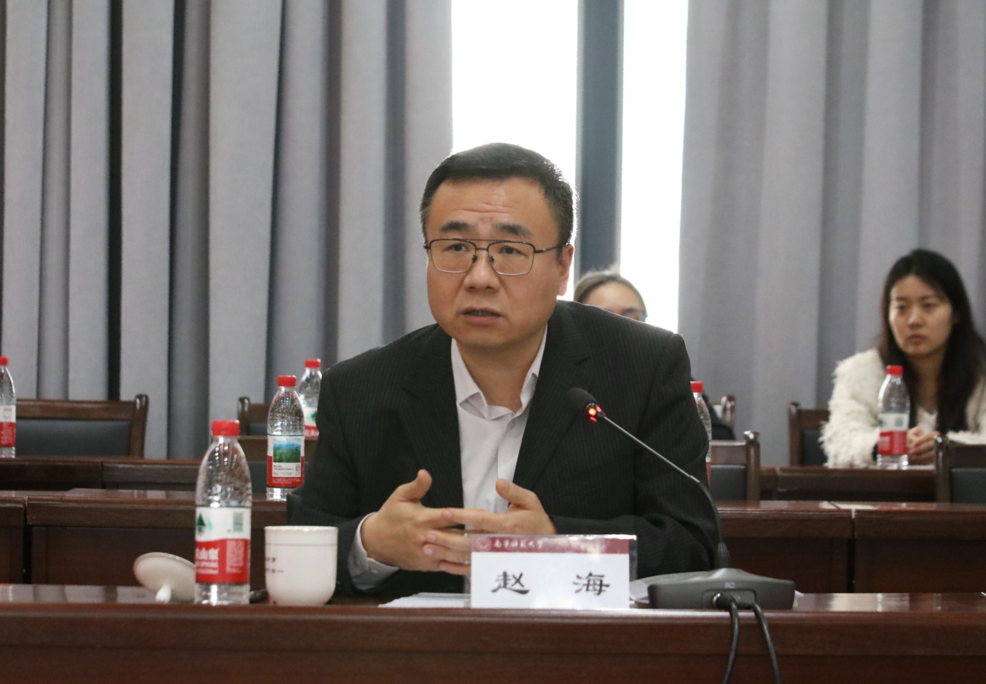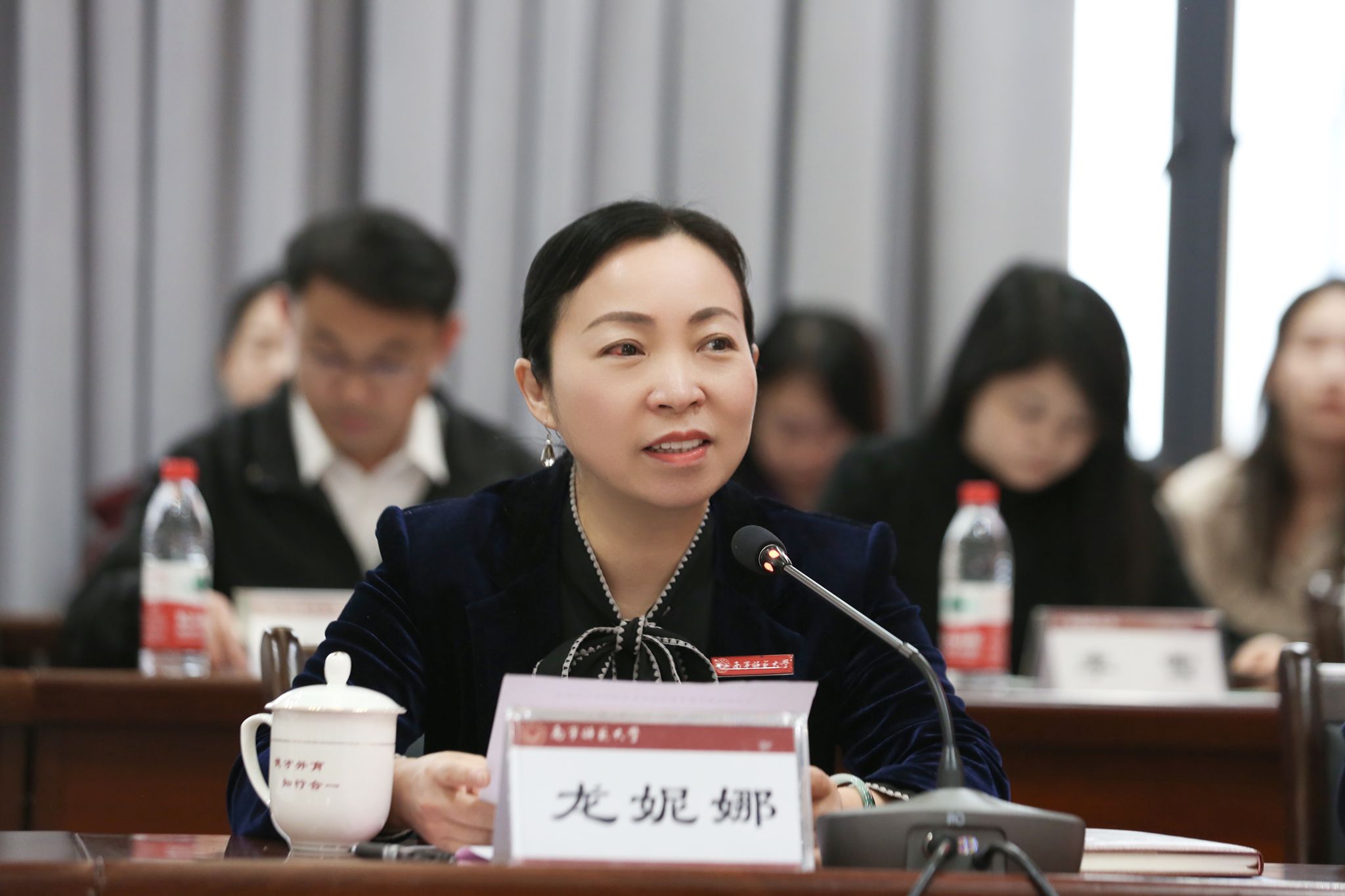 龙妮娜代表学校对参会领导、来宾的到来表示欢迎和感谢。她表示,在新时代背景下,希望与会各方用好新时代音乐教育教材实践基地平台,深入合作,淬炼新时代精品教材,筑牢基础音乐教育基石,打造音乐教育专业全新生态,为我国师范教育事业和地方基础教育发展做出新的更大贡献。