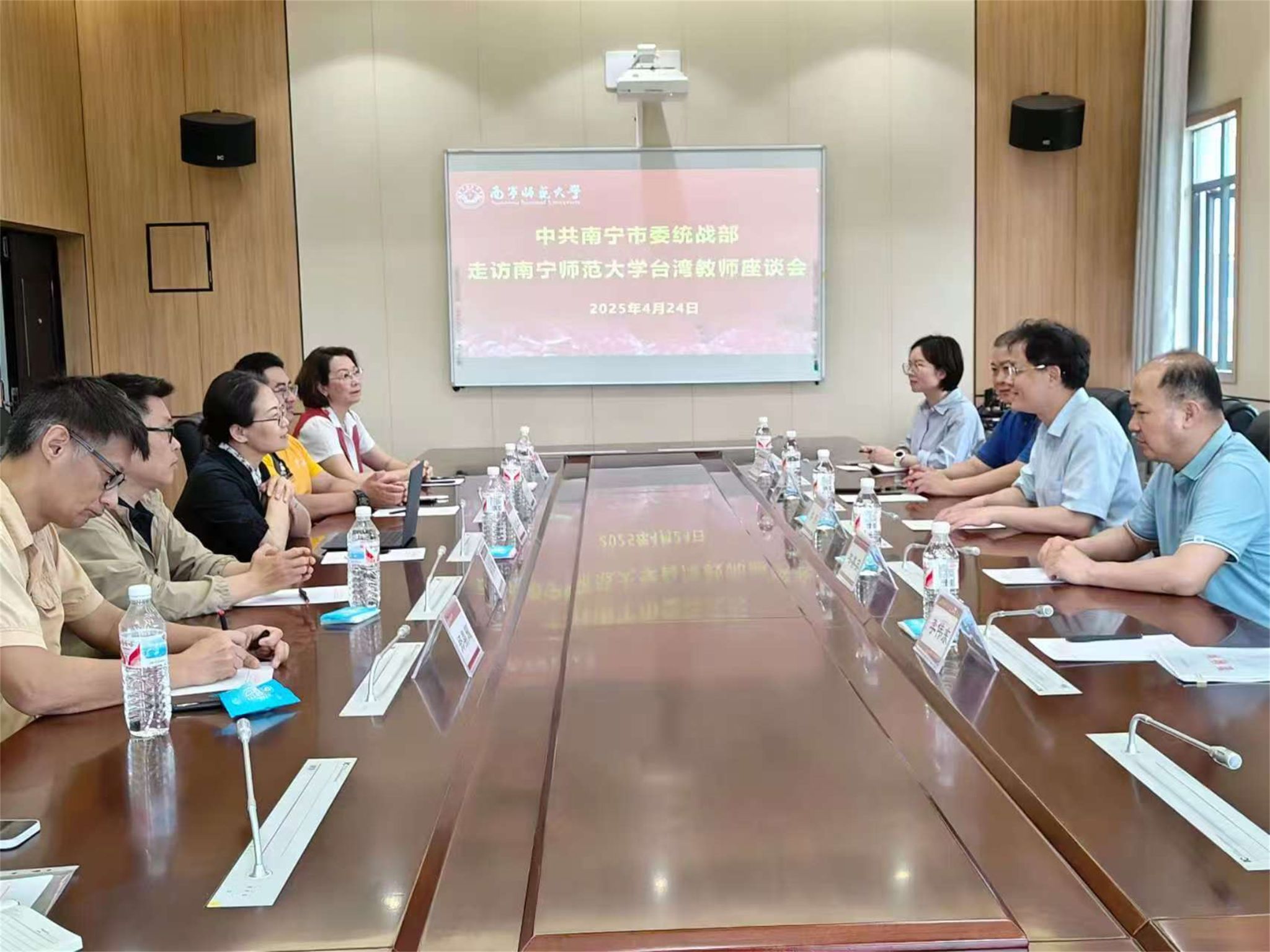4月24日,南宁市委统战部副部长、侨办主任(兼)、台办主任(兼)李彤一行到beats365走访座谈台湾教师。武鸣区委统战部、学校党委统战部及武鸣校区各学院的台湾教师参加了会议。