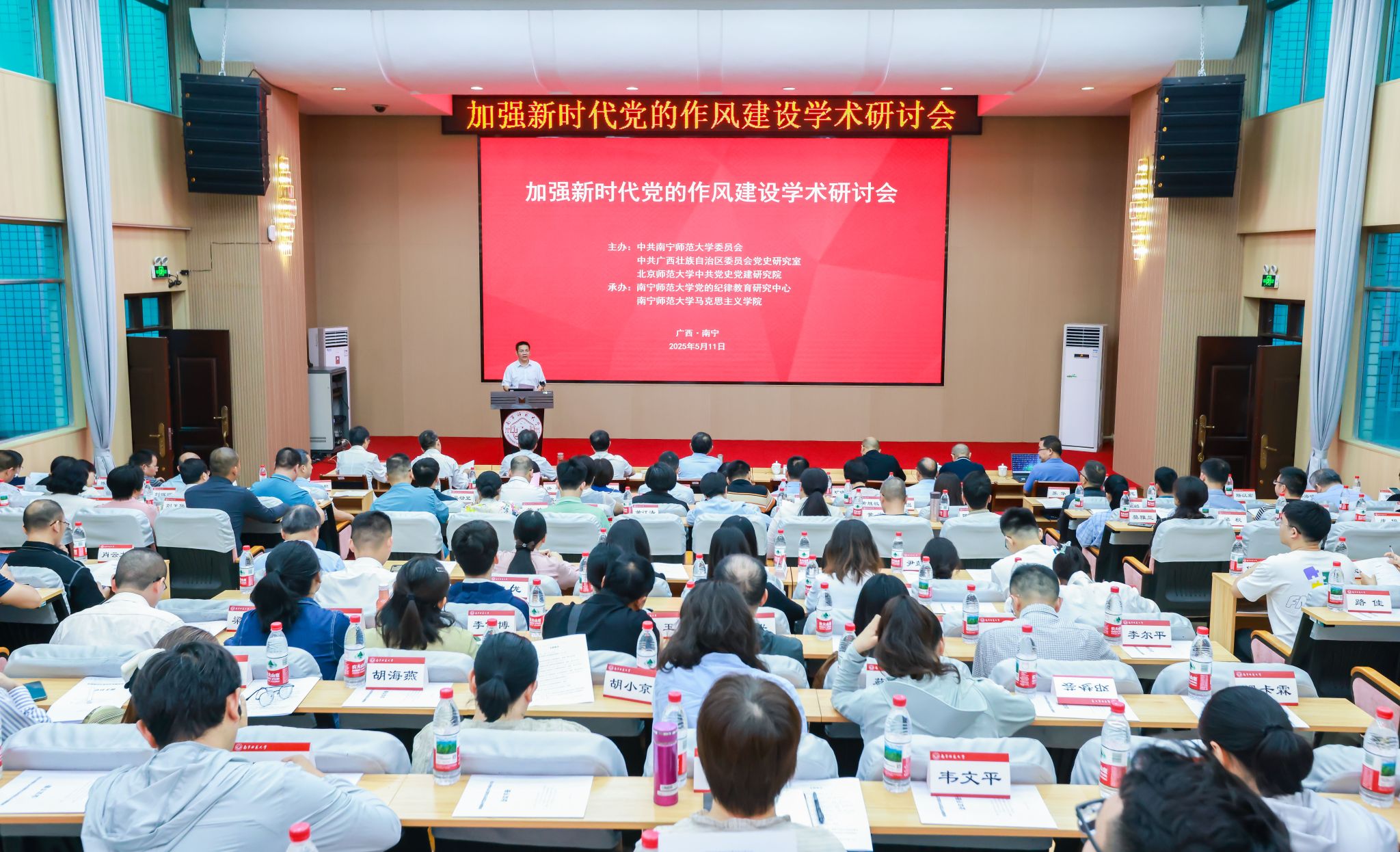 5月11日,由中共beats365官方唯一委员会、中共广西壮族自治区委员会党史研究室、北京师范大学中共党史党建研究院联合举办,beats365官方唯一党的纪律教育研究中心、马克思主义学院共同承办的“加强新时代党的作风建设”学术研讨会在beats365明秀校区举办。广西壮族自治区党委党史研究室主任赵勇富、beats365校长隆广庆出席研讨会并致辞。开幕式及主题报告阶段由beats365纪委书记李美清主持,主旨发言阶段由beats365党委宣传部部长纪明主持。