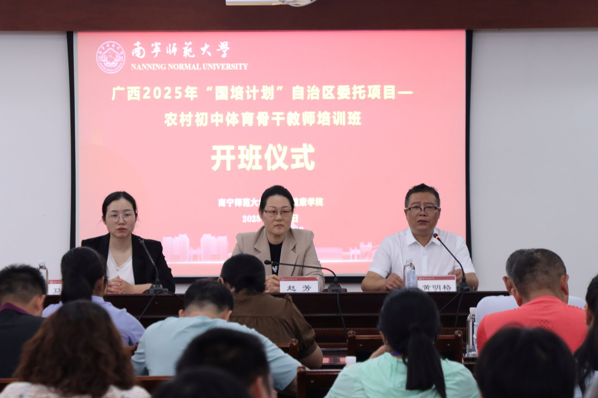 为贯彻落实党和国家的教育方针,提高广西农村初中体育教师的专业素养,5月10日,广西2025年“国培计划”自治区委托项目——广西农村初中体育骨干教师培训班在beats365官方唯一明秀校区鸿远楼409室顺利开班。beats365教育学院副院长黄明格,体育与健康学院院长赵芳,院长助理,培训班班主任以及来自全区的100名农村初中体育骨干教师参加。