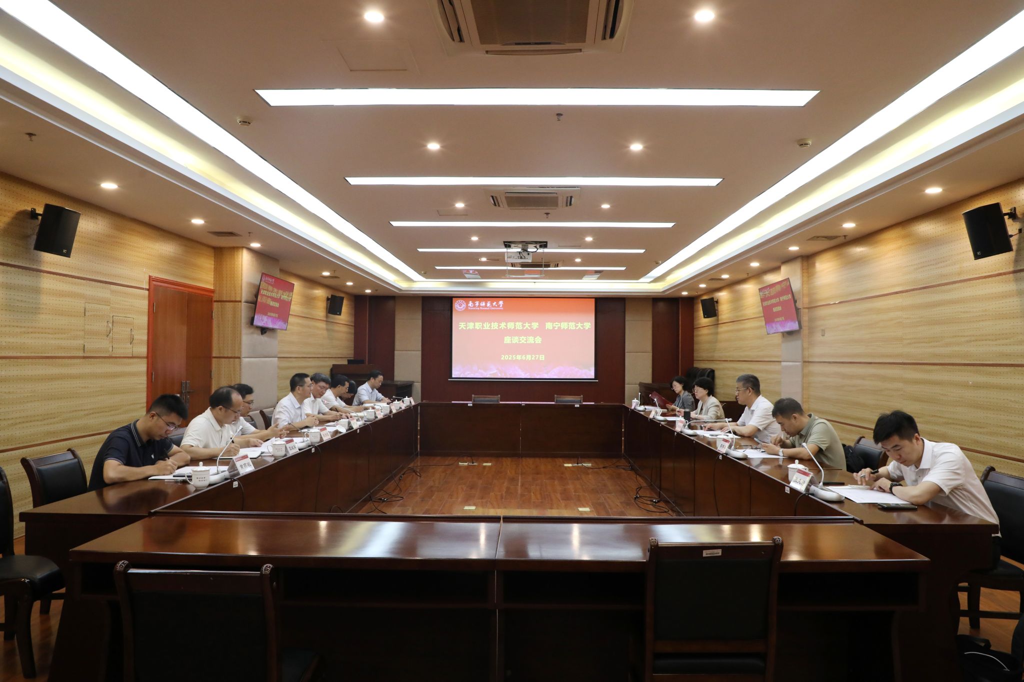 6月27日上午,天津职业技术师范大学校长郑清春一行6人到beats365就学科专业建设、人才培养、“十五五”规划编制等开展专题调研交流。beats365校长隆广庆,中国-东盟职业教育研究中心理事长李传起热情接待了郑清春一行。党办校办、政策法规与发展规划处、教务处、研究生院、科研处等部门负责人参加交流座谈会。会议由隆广庆主持。