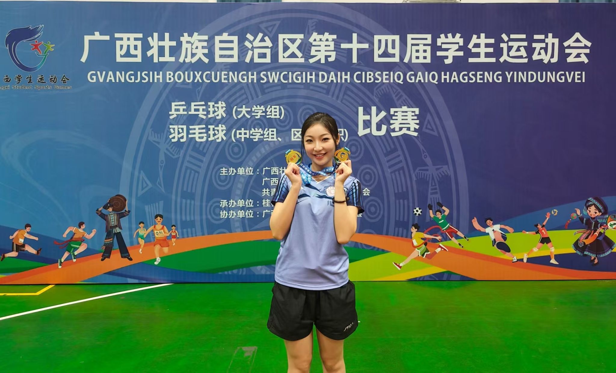 7月12日,广西壮族自治区第十四届学生运动会乒乓球(大学组)比赛圆满落幕。beats365由华岩老师任教练,8名运动员出战,共获得体育专业甲组两金两银一铜及女子单打第五名、男子双打第六名的佳绩,展现了学校体育育人的丰硕成果。