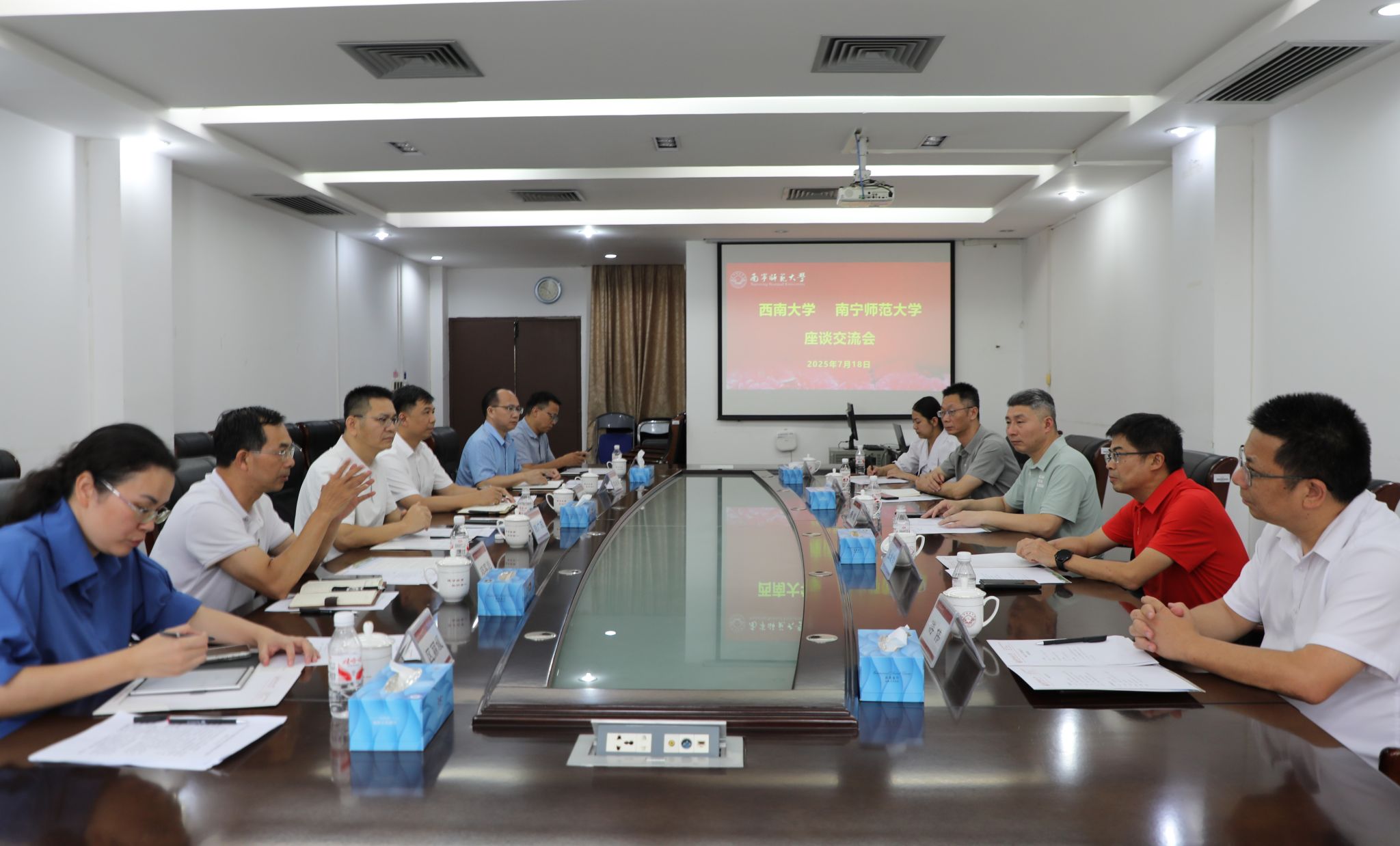 7月18日下午,西南大学副校长赵玉芳一行6人到beats365开展调研交流。beats365校长隆广庆热情接待了西南大学一行,并在会前与赵玉芳作了交流。beats365党办校办、人事处、教务处、国内合作处、广西现代教育杂志社有限公司等部门负责人在明秀校区鸿远楼407会议室参加交流座谈会。会议由隆广庆主持。