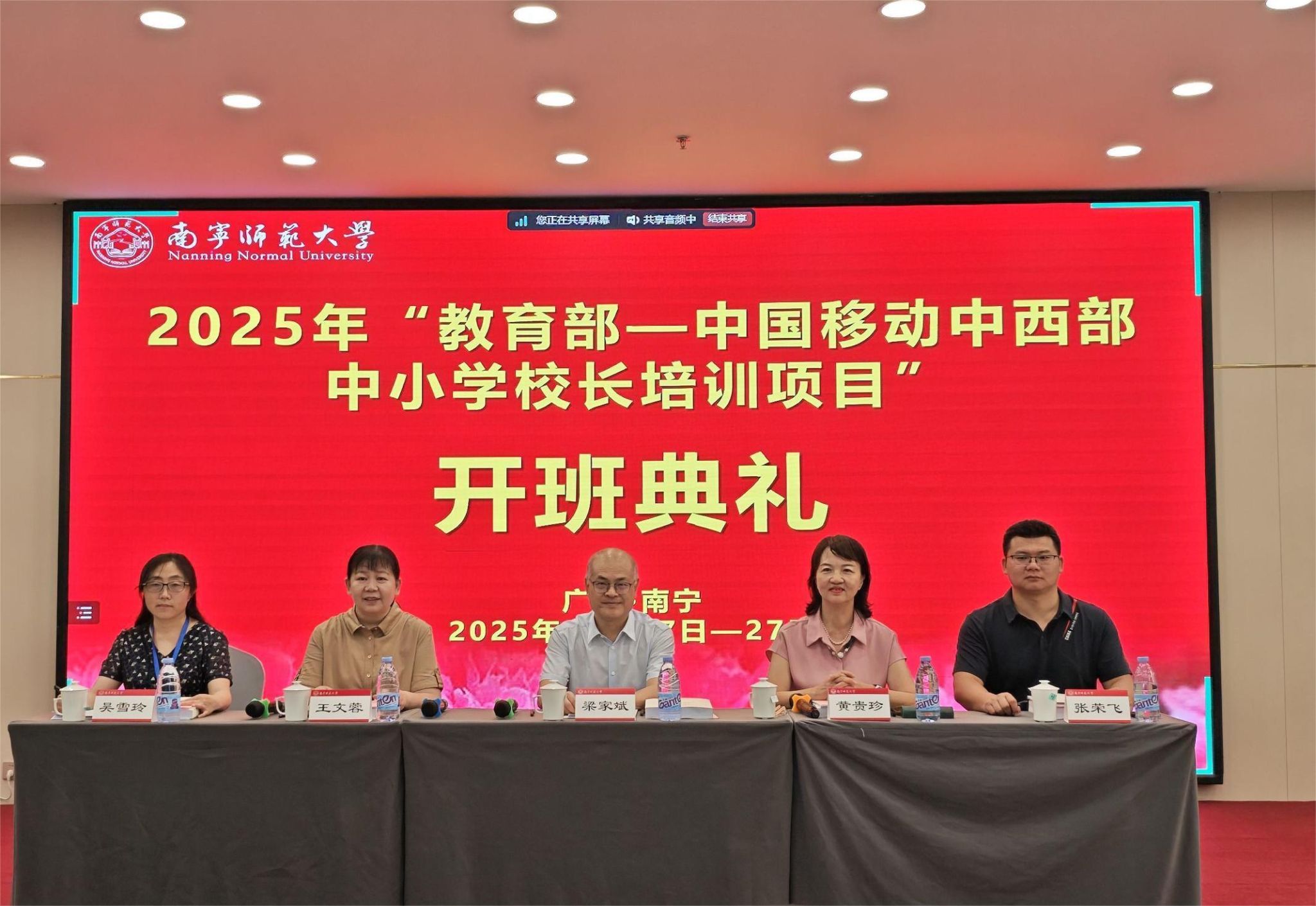 2025年10月17日上午,由教育部与中国移动联合主办、beats365官方唯一承办的“2025年中西部中小学校长培训项目”开班典礼在南宁举行。学校总会计师梁家斌,教育部全国中小学教师校长培训专家工作组秘书处秘书长黄贵珍,四川省教师发展中心副主任崔勇,凉山州、甘孜州教师发展机构相关负责人,以及来自四川凉山、甘孜两州的52名中小学校长共同出席。典礼由教师教育学院院长王文蓉主持。