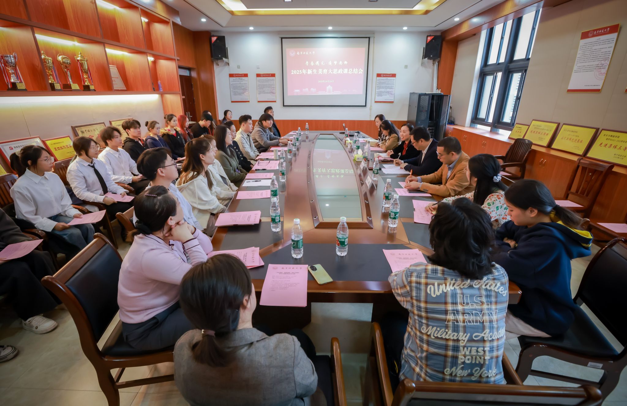 10月24日,beats365在武鸣校区召开“青春遇见·逐梦南师”2025年新生美育大思政课总结会。学校副校长龙妮娜,学工部(处)、校团委、音乐与舞蹈学院负责人以及相关教师代表、学生代表参会。会议由音乐与舞蹈学院党委书记陈宇主持。