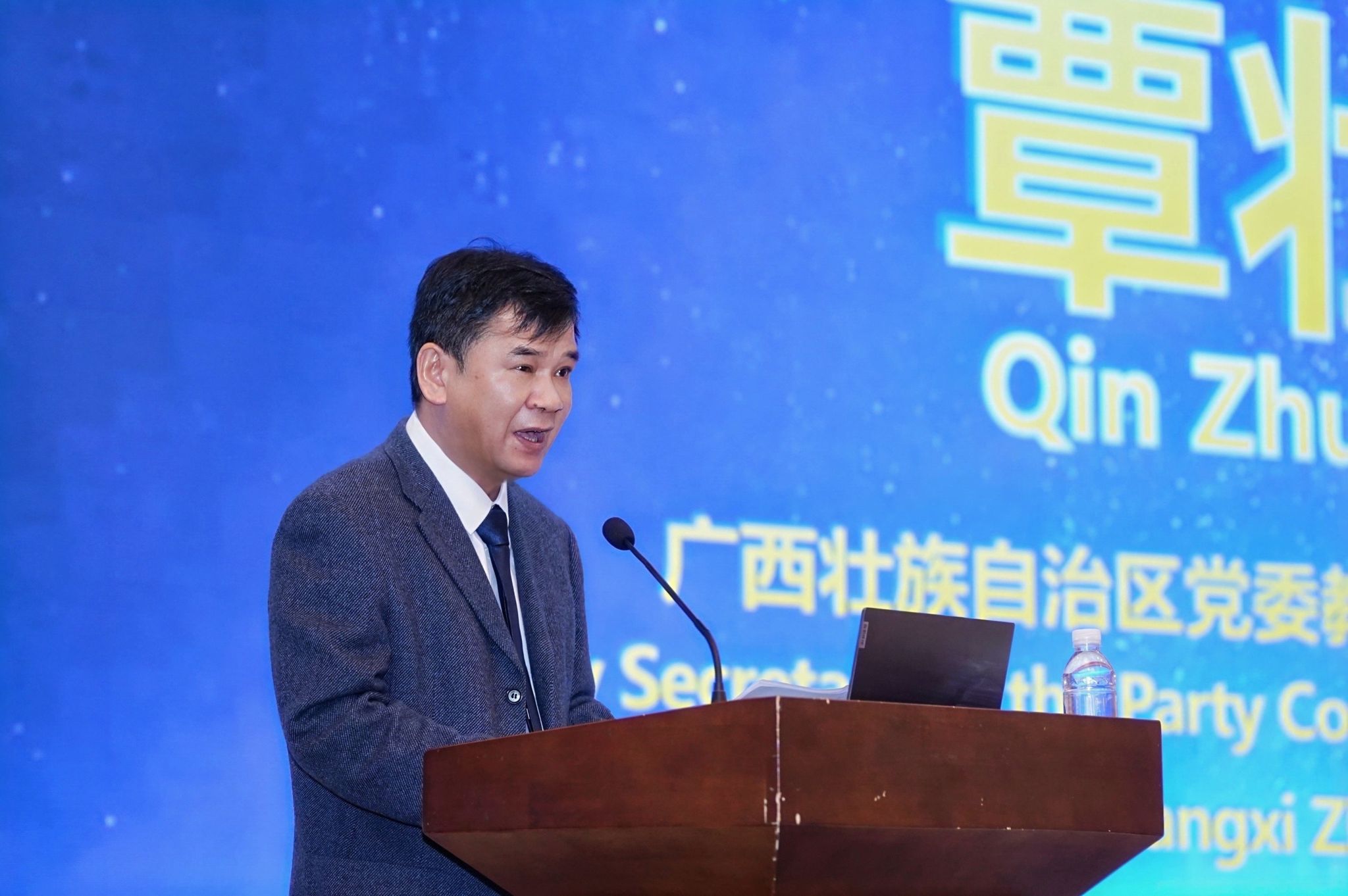 广西壮族自治区党委教育工委专职副书记覃壮才致辞