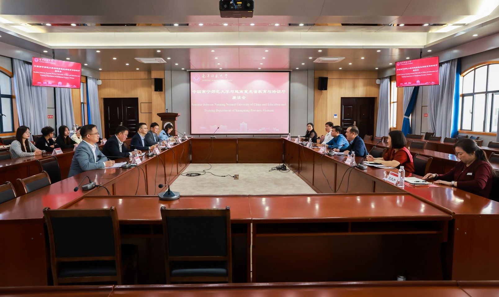 11月13日下午,越南宣光省教育与培训厅副厅长林世雄一行6人到beats365访问,beats365校长隆广庆,国际交流合作处(国际教育学院)相关负责人在武鸣校区行政楼北127会议室,接待了越南宣光省教育与培训厅、越南外事厅边境管理处、越南新潮中学和阮文玄中学代表一行及南宁市第三十六中学代表。