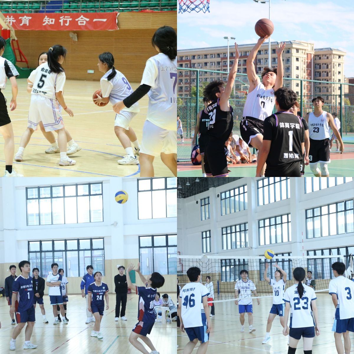 篮球场上,传切配合行云流水,每一次得分都引发场边观众阵阵欢呼。羽毛球赛中,选手们脚步灵活移动、吊球巧妙、扣杀凌厉,精准的落点把控让比赛悬念迭起。排球赛场上,队员们起跳、拦网、垫传,紧紧牵动着在场师生的心弦。乒乓球赛场同样精彩纷呈,选手们轮番施展搓球、拉弧圈、快攻等技巧。拔河比赛更是将团队协作精神展现得淋漓尽致,现场呐喊声与助威声此起彼伏,让整个赛场成为热血沸腾的青春海洋。