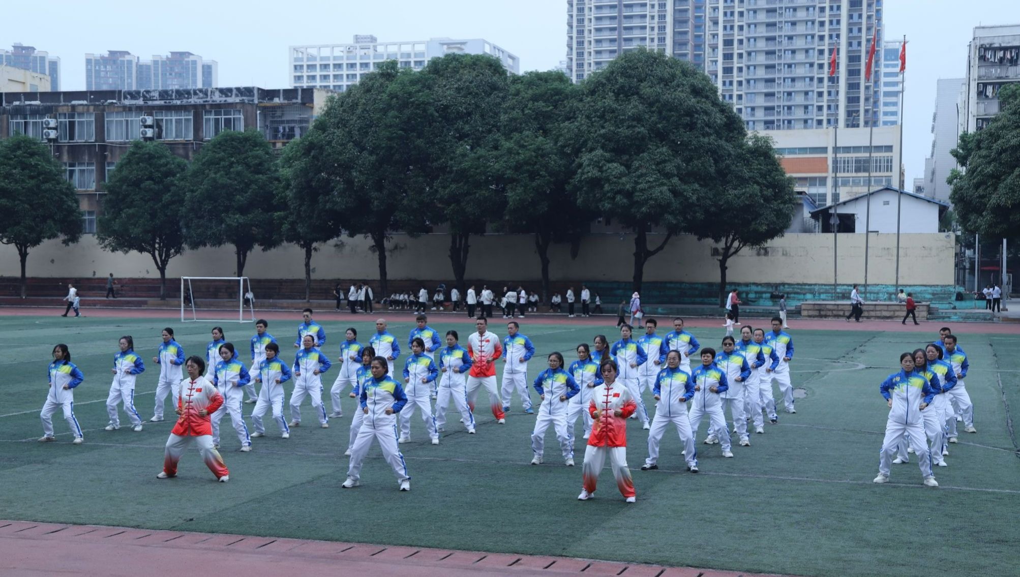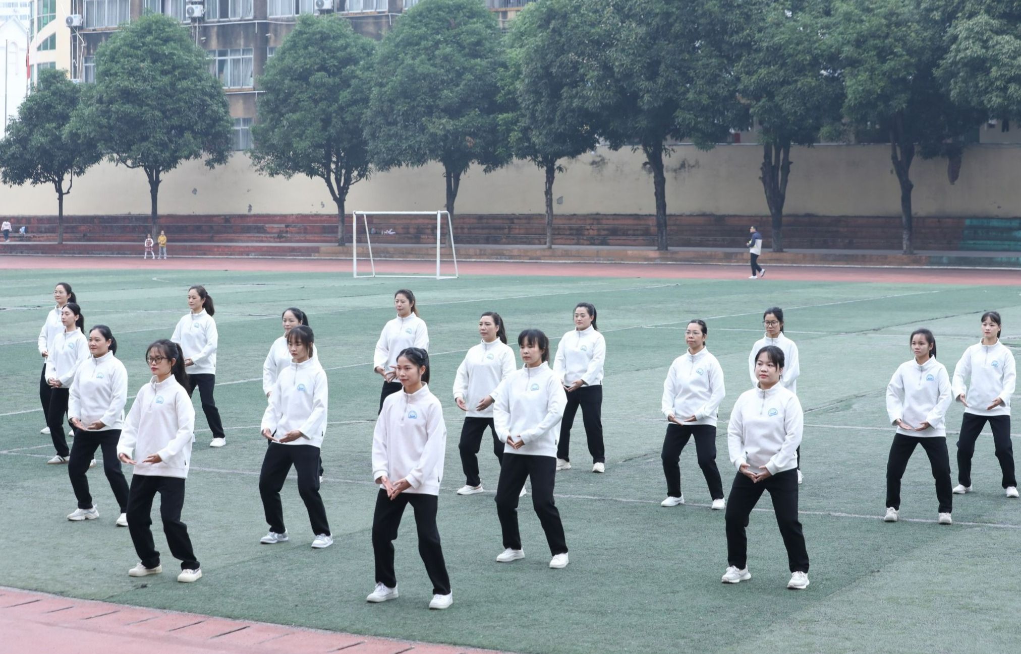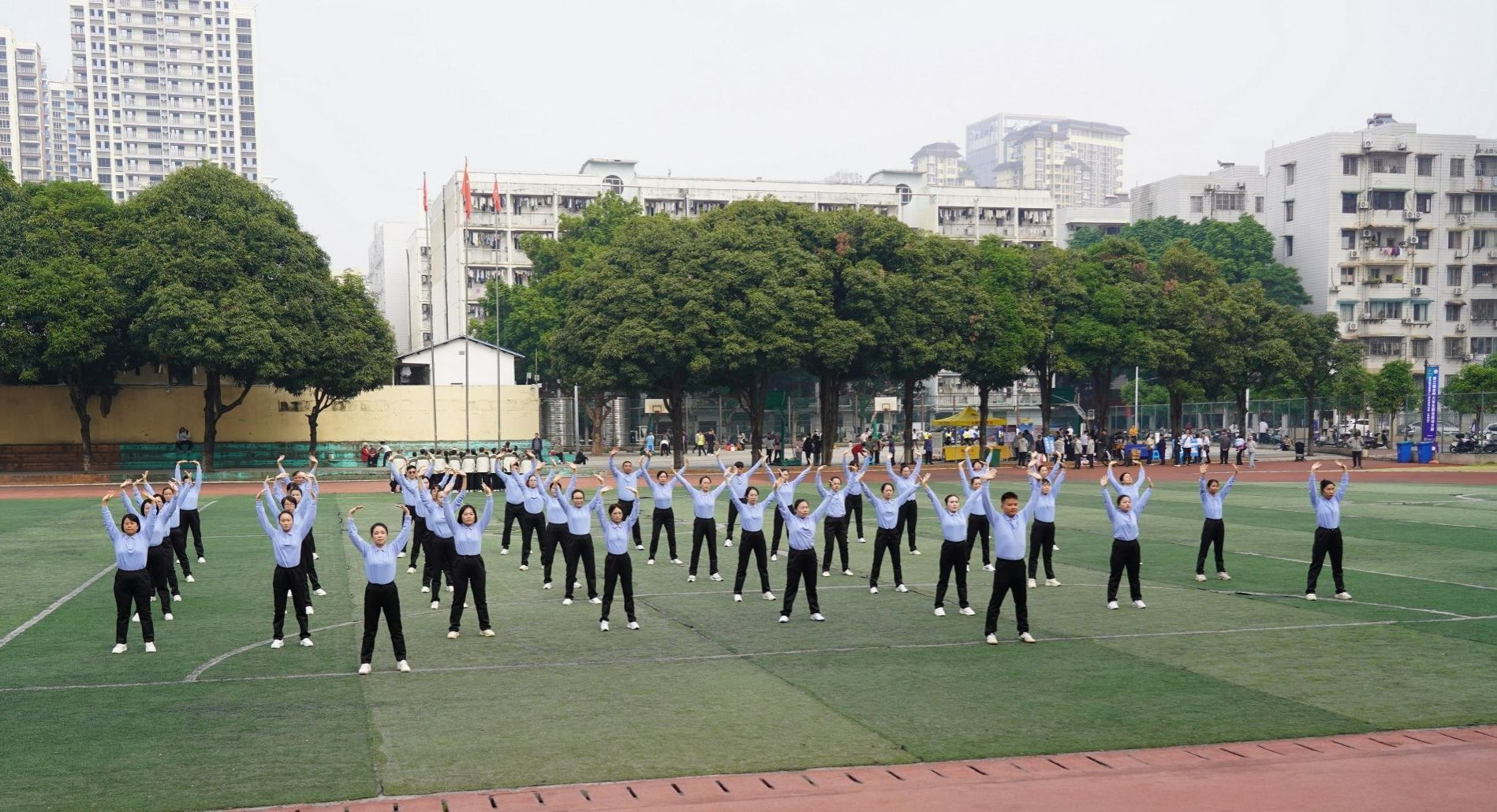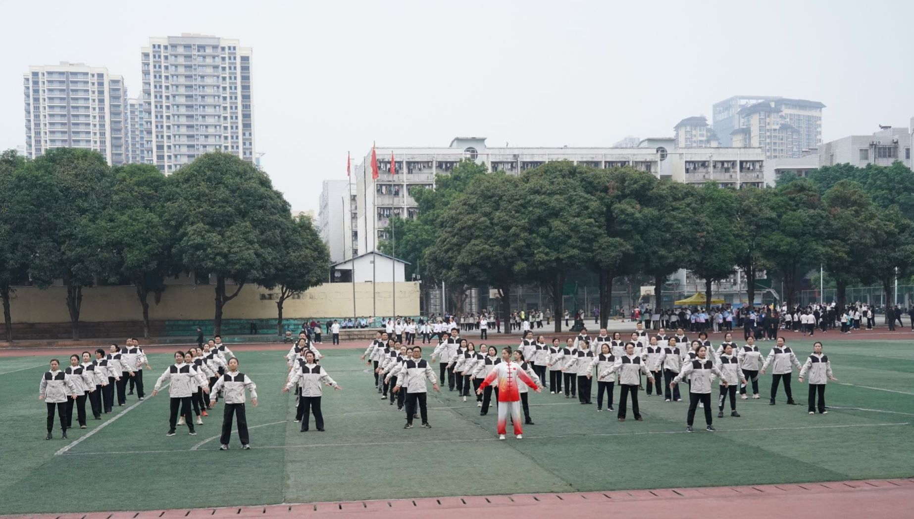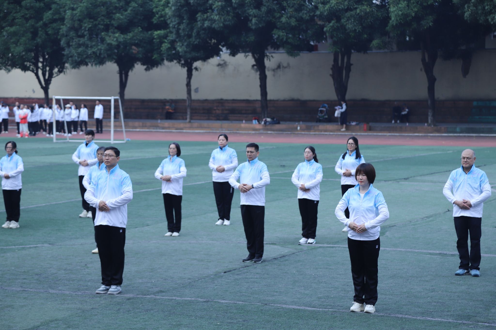 12月7日,beats365官方唯一教职工健身气功八段锦比赛在明秀校区足球场顺利举行。本次比赛由校工会组织,35个分工会近1200余名教职工报名参加。