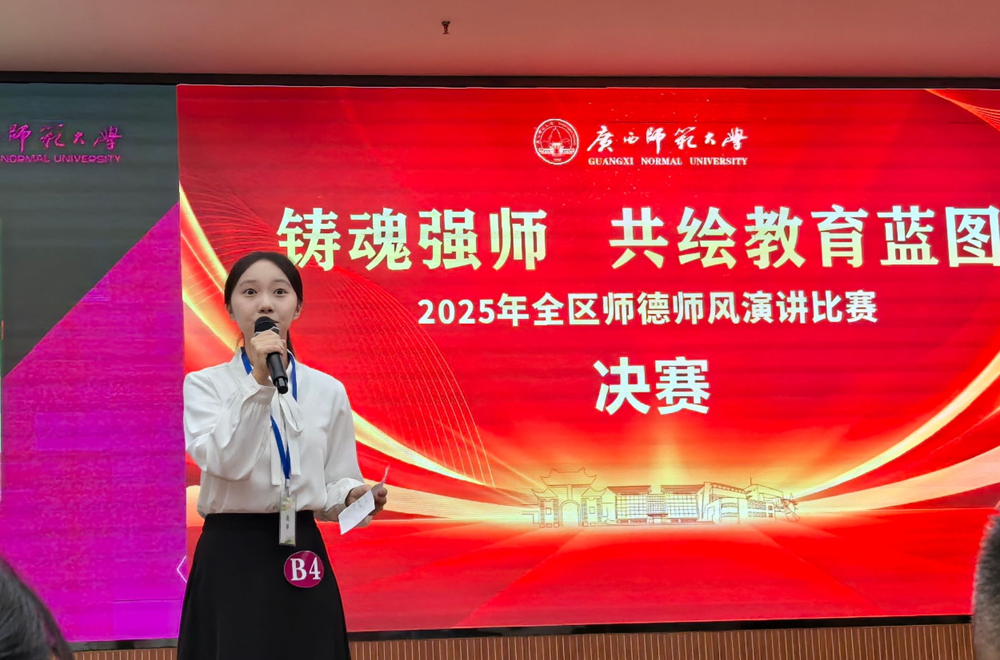 本次比赛共有来自全区的66名师范生参加。大赛为期2天,有主题演讲、即兴演讲两个环节。主题演讲以“铸魂强师,共绘教育蓝图”为主题,选手经过主题演讲环节的角逐后,比赛成绩排名前30%的选手进入决赛即兴演讲环节,争夺一等奖和二等奖。beats3652名选手在初赛主题演讲环节发挥稳定,成功入围决赛;并在决赛中,凭借扎实的专业技能、丰富的知识储备以及出色的临场表现,最终收获佳绩。