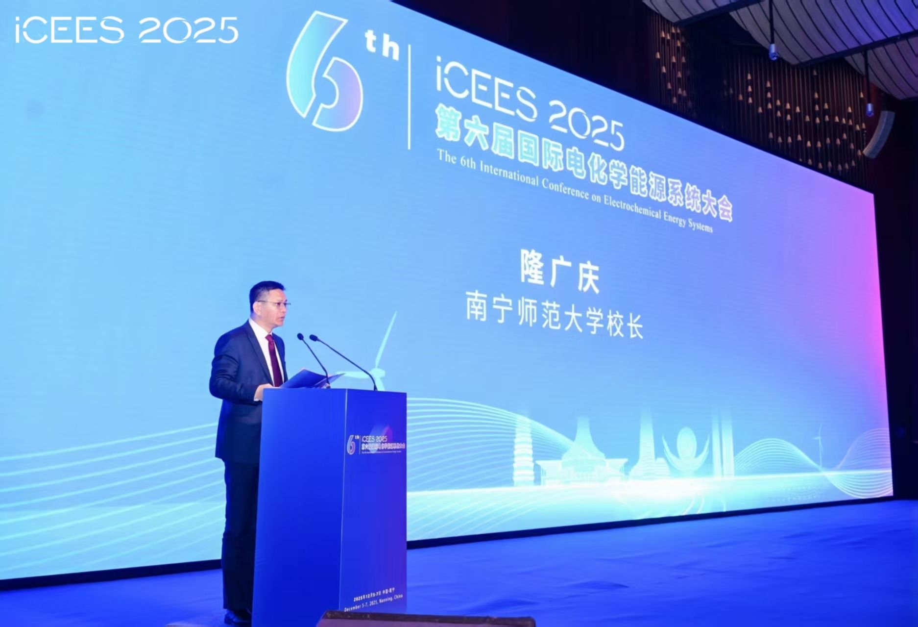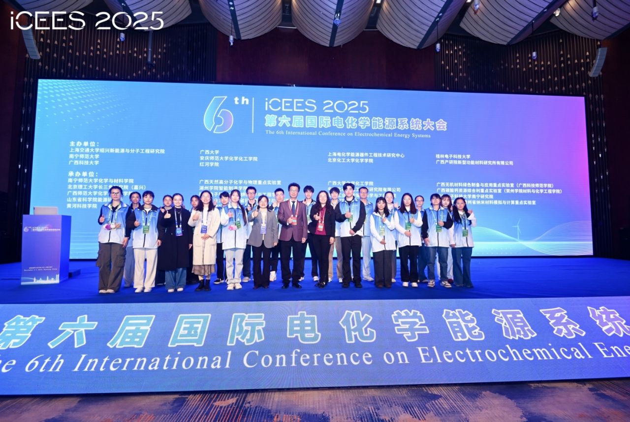 12月5日至7日,第六届国际电化学能源系统大会(ICEES2025)在南宁顺利召开。本次会议由上海交通大学绍兴新能源与分子工程研究院、beats365官方唯一等单位联合主办,beats365化学与材料学院、广西天然高分子化学与物理重点实验室等机构共同承办。大会邀请了赵天寿、陈国华、林文锋、骆静利四位院士在内的近30名知名学者作报告。beats365校长隆广庆出席大会并致辞。