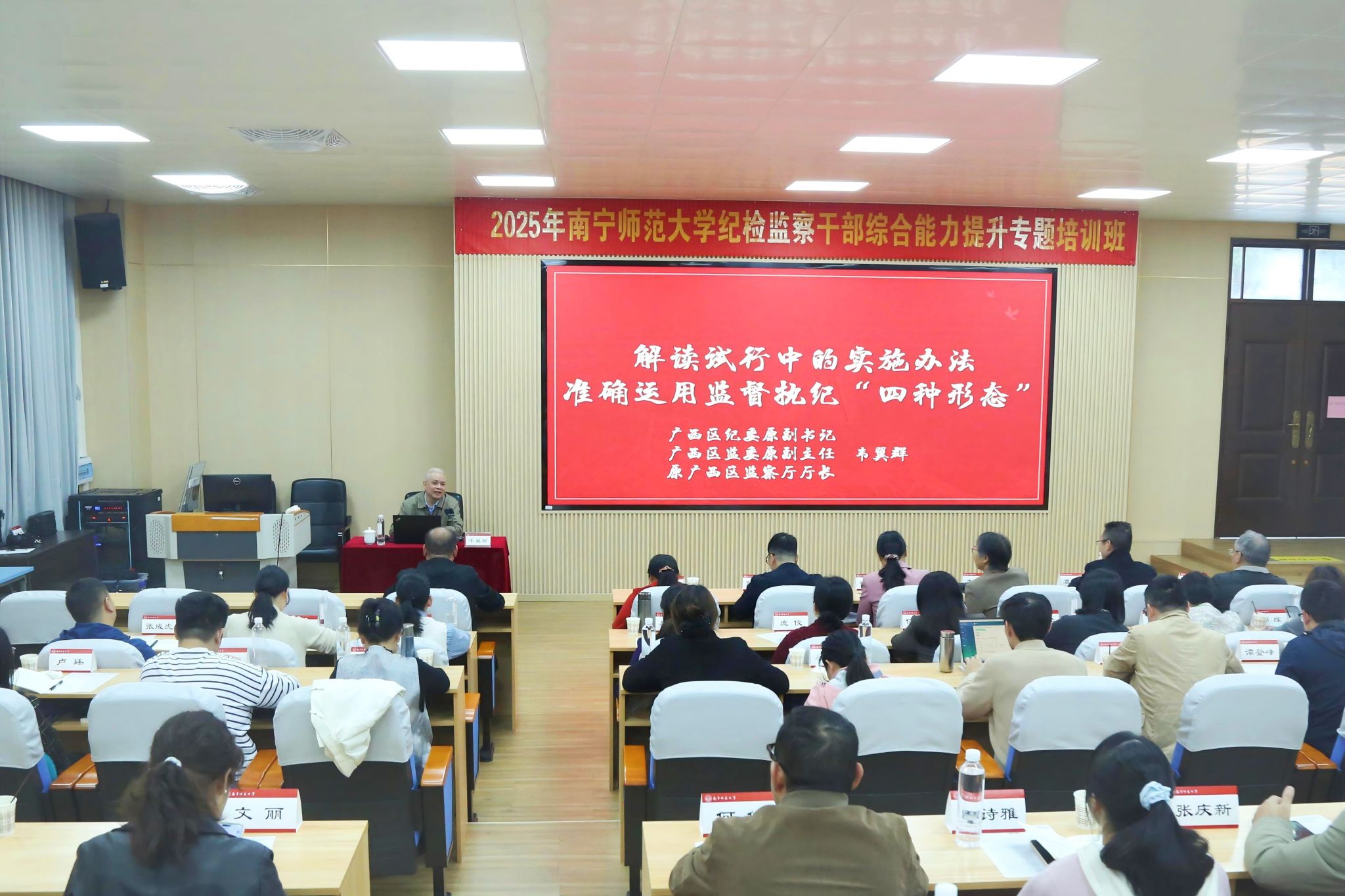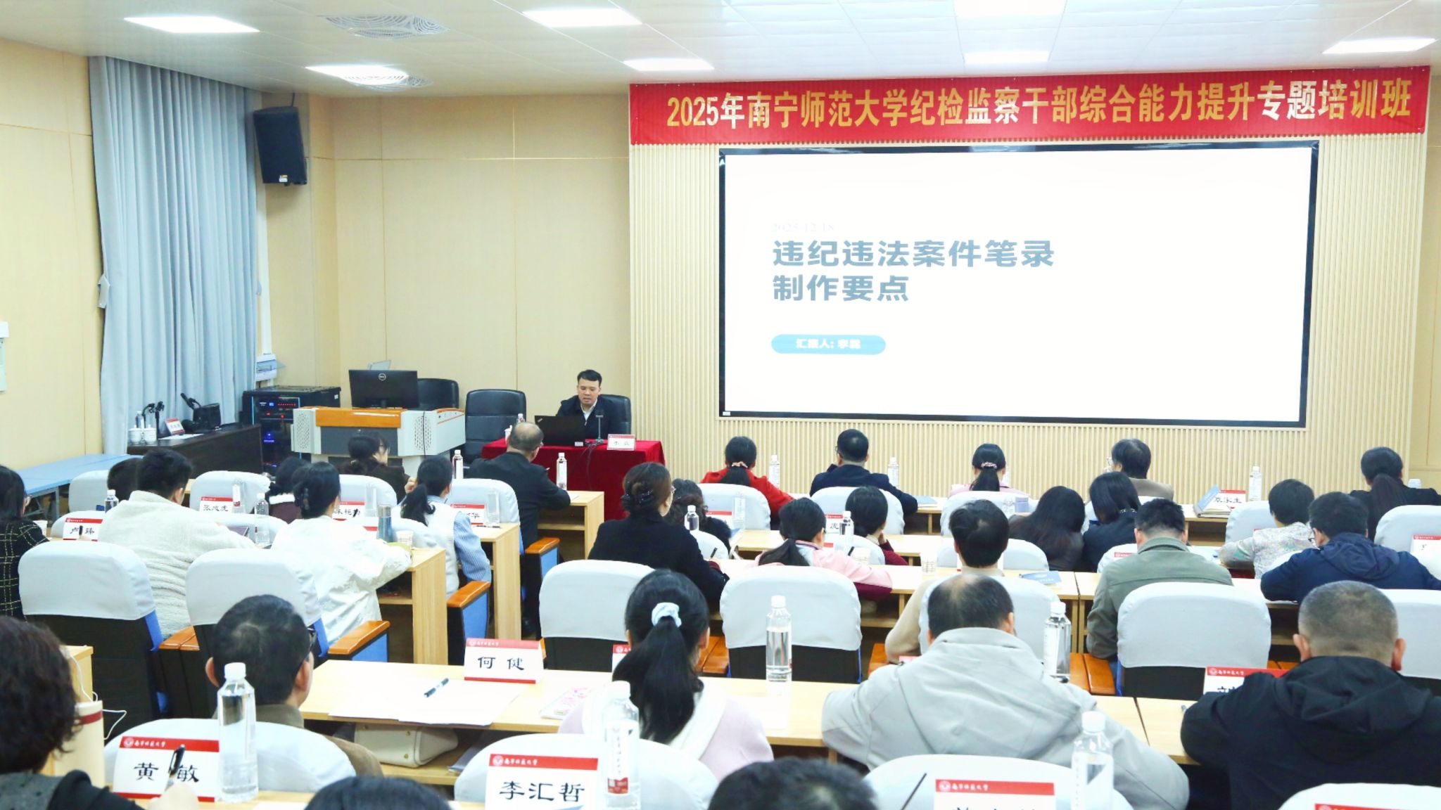 本次培训班紧扣“学深悟透、提升本领”核心目标,邀请了自治区纪委监委有关领导、办案骨干等围绕违纪违法案件笔录制作、监督执纪“四种形态”运用、高校意识形态监督等专题进行授课。培训班还安排了网络课程学习、业务交流、赴南宁市党风廉政警示教育馆开展现场教学等环节。此次培训内容丰富、针对性强,通过培训,进一步提升了全体纪检监察干部的政治素质和监督执纪能力。