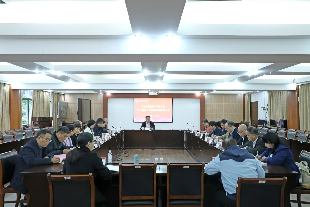 12月24日下午,学校党委理论学习中心组2025年第六次专题学习集中研讨会在明秀校区鸿远楼409会议室举行。学校党委书记张鹏主持会议。