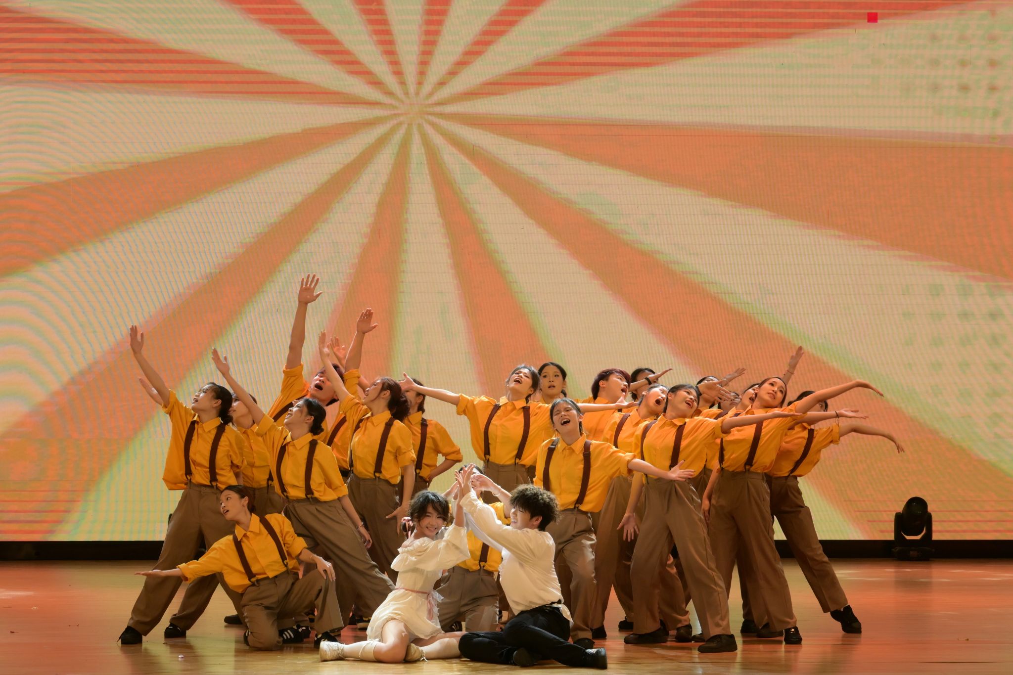 第二篇章集中展现社团风采与青春活力。学校各级学生社团轮番登场,带来了活力四射的啦啦操、铿锵有力的朗诵、余音绕梁的歌曲串烧、尽显江南韵味的古典舞走秀、动感十足的街舞表演、演绎热血岁月的话剧、热闹非凡的狮腾舞跃等丰富多彩的节目,生动诠释了青年学子如火的炽热青春,充分彰显了社团的活力与风采。期间,校团委数字吉祥“犇犇”频频与现场观众互动,缤纷的气球雨、满载心愿的纸飞机更是将氛围推向高潮。活动在全体人员齐声高唱《我和我的祖国》的激昂旋律中圆满落幕。