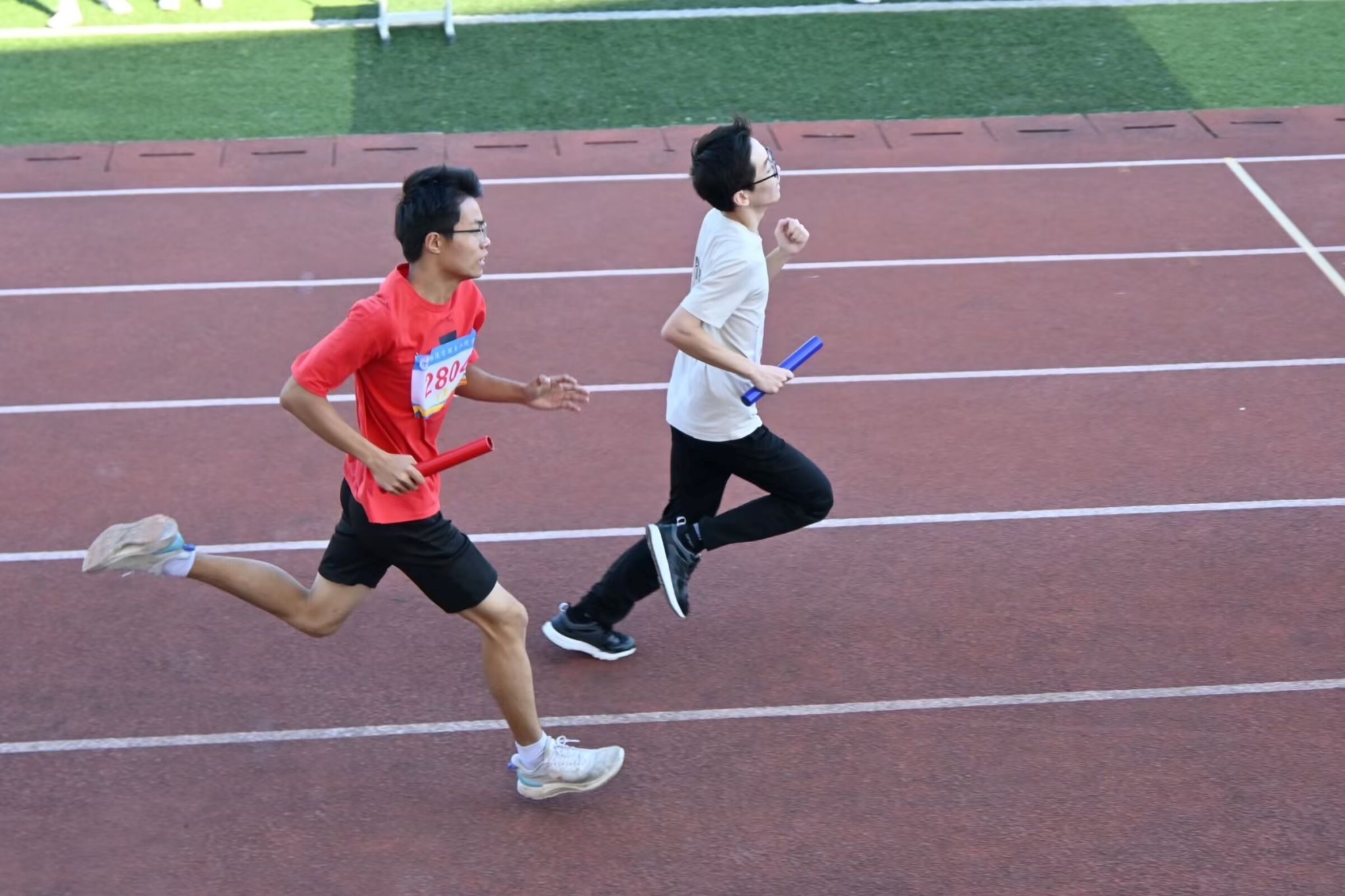 赛道上的二三四棒选手们始终保持着精神高度的集中,等待着接过队友传递的接力棒。一次次惊险刺激的弯道超越,一次次拼尽全力的直道冲刺,一次次默契配合的交接棒,点燃了现场观众的激情。比赛时有一名选手不慎跌倒,但他重新爬起来,坚持完成了比赛,诠释了永不言弃的体育精神。