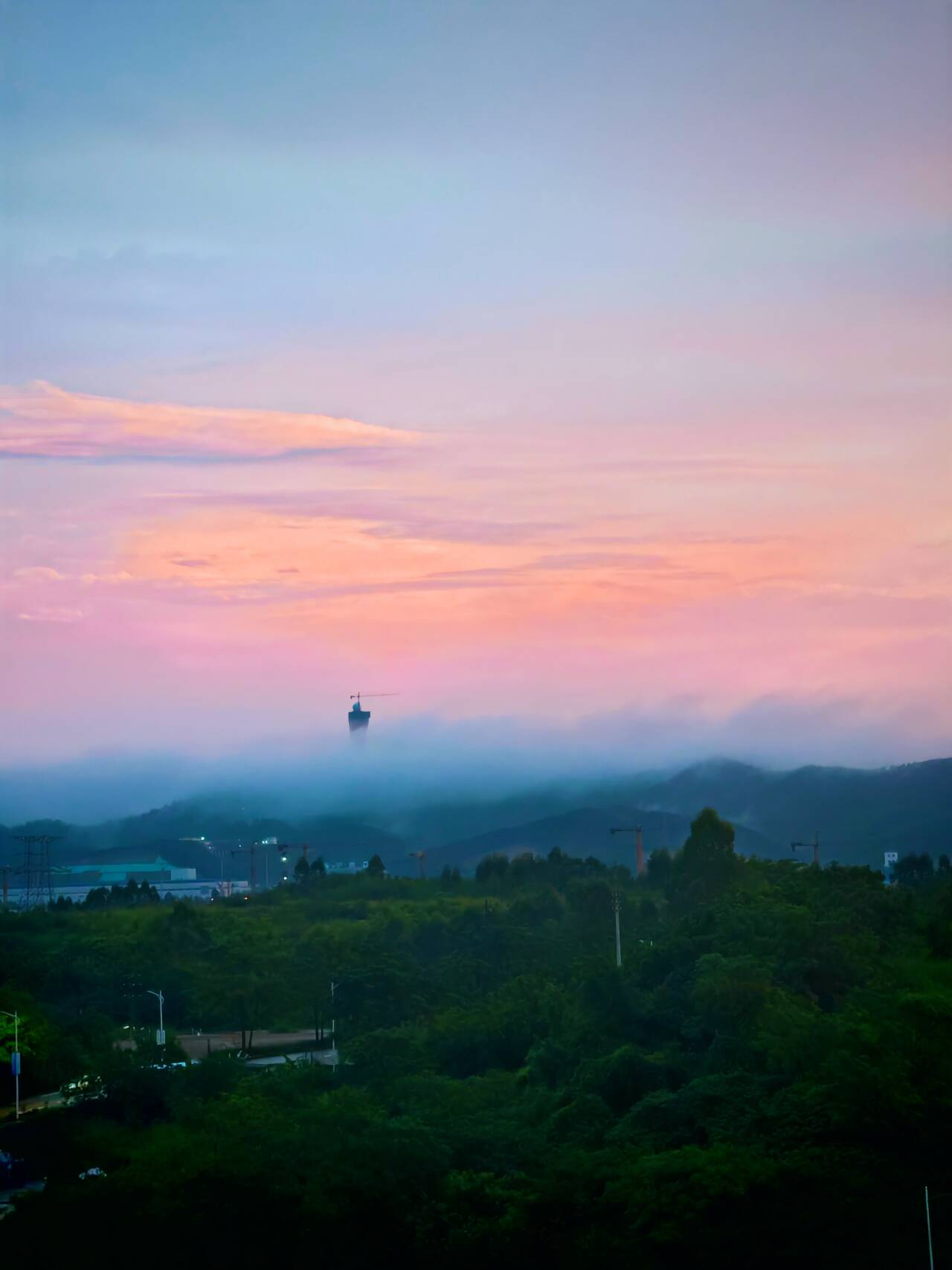 在这条乡间公路上一直朝着家的方向走,天空已微暗,抬头映入眼帘的画面,就像是身穿橘色婚纱的新娘,身边带着几只深蓝的精灵,在等待晨曦王子的迎接。那一刻之后,大量的深蓝色从厚厚的云层挤出来,包裹了那一抹亮色,天空变得微暗,但我的心却似乎变得更加明亮。我不觉时间的流逝,只一直走。回想之前走的这条路总是行色匆匆,今天格外享受在路上的时光。我知我的目标是隐匿在前方葱葱绿意中的飘着袅袅炊烟的小屋,但此刻似乎又漫无目的,心变得无比宽泛和沉静,往日的匆忙与烦忧,化为释然。