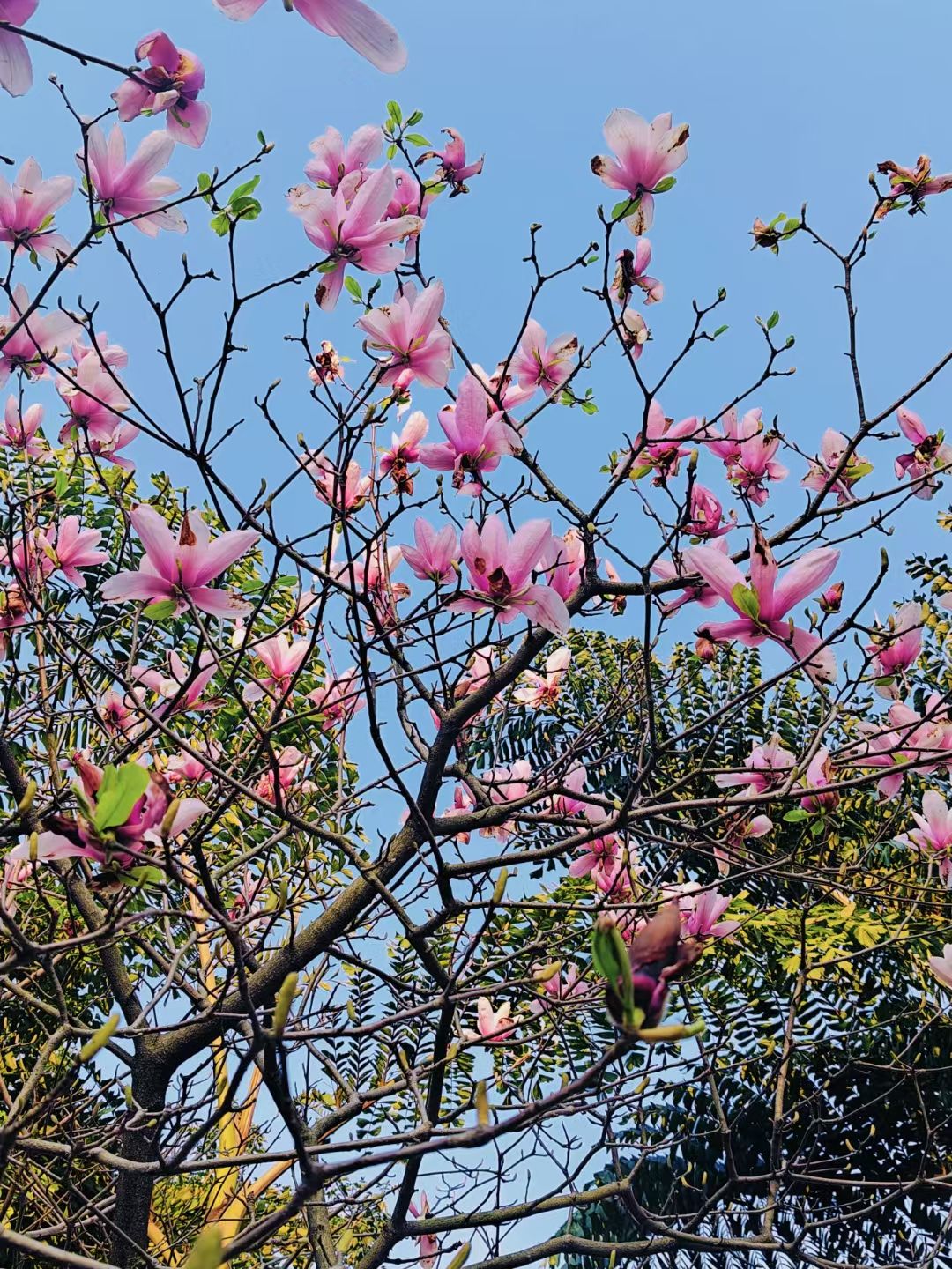 四月的校园里,黄花风铃木花落叶长,紫荆花灿烂盛开,这是一场生命的接力,它们用各自的方式诉说着春天的故事。