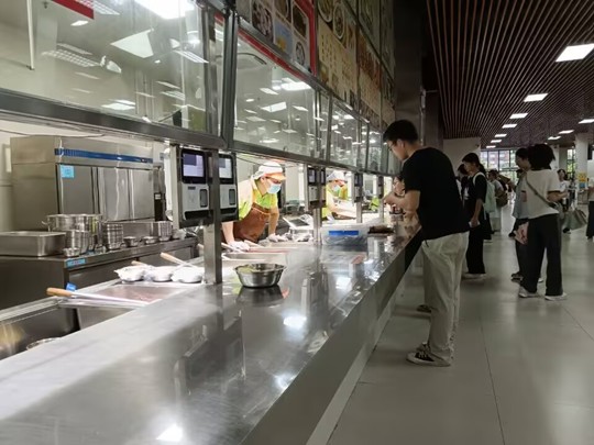 食堂窗口的暖光里,阿姨系着围裙,在透明操作间里有条不紊地备餐。不锈钢的餐台擦得锃亮,盛着热汤的大锅蒸汽袅袅,他们用一双双戴着手套的手,把清晨的第一份温暖递到学生手中,让赶课的脚步也有了踏实的底气。