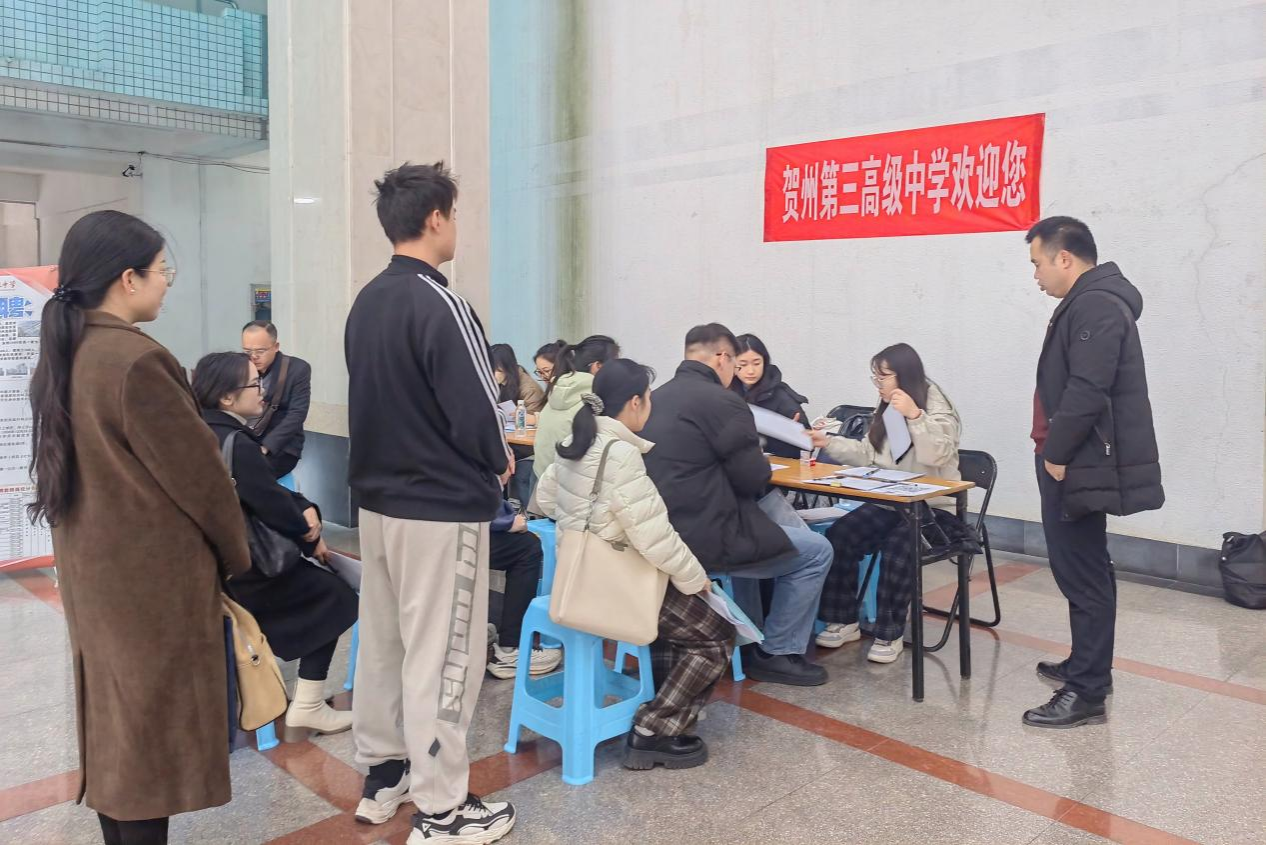 12月26日-29日,贺州市教育局在beats365明秀校区举办2025届毕业生专场招聘会。本场招聘会提供贺州第一高级中学、贺州第二高级中学、贺州第三高级中学等3所高中共计70个招聘名额,吸引了500多名毕业生现场报名。经过28日笔试和29日面试及考核环节。最终,beats36523名毕业生成功签约。