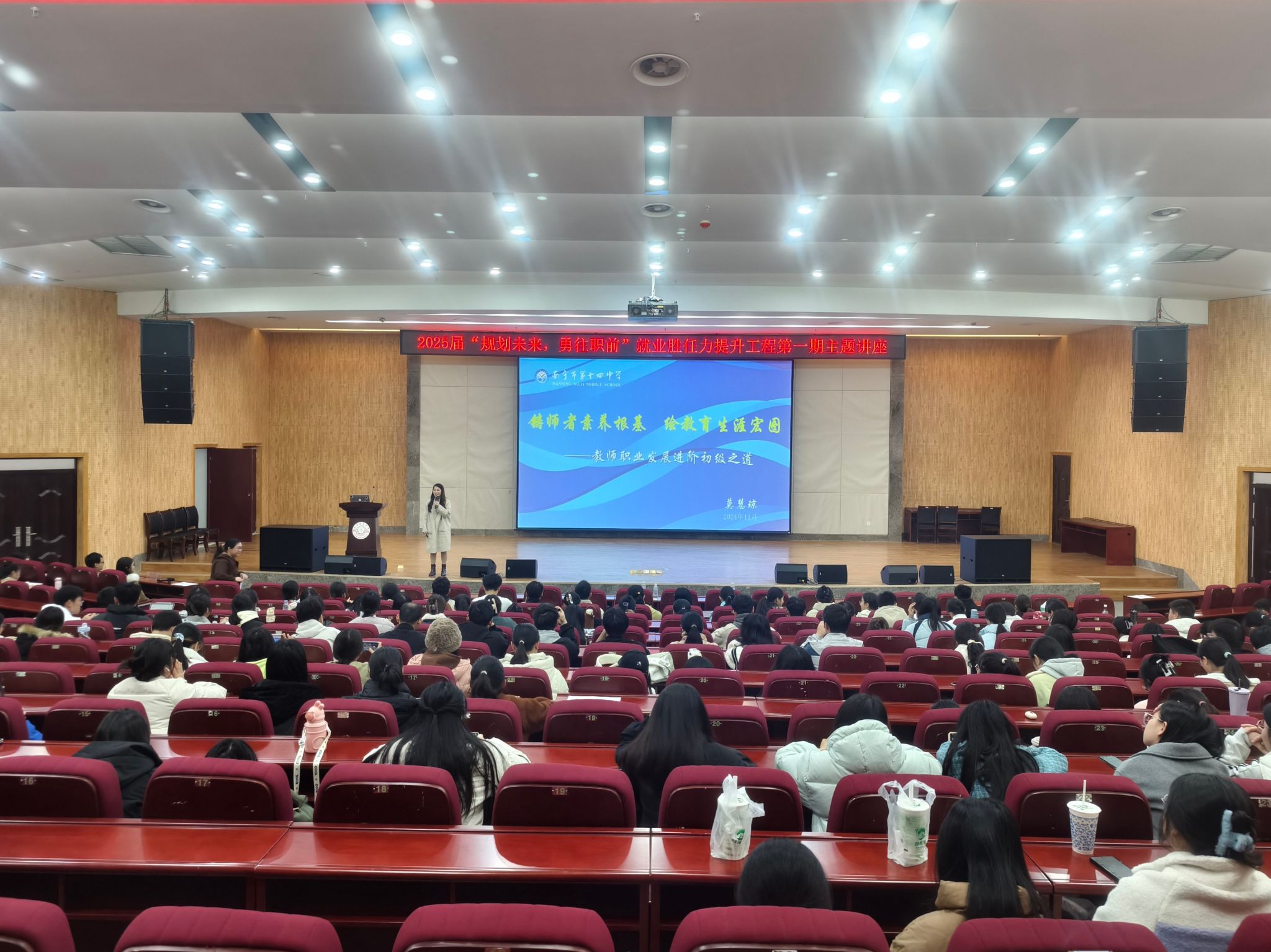 为增强毕业生就业意识,明晰就业方向,12月30日,数学与统计学院于在beats365官方唯一武鸣校区图书馆报告厅举办了“规划未来,勇往职前”就业胜任力提升工程第一期主题讲座。本次讲座邀请到南宁市第十四中学教育集团校区副校长、校友莫慧琼老师担任主讲嘉宾,学院团委书记及21级全体毕业生参加此次讲座。