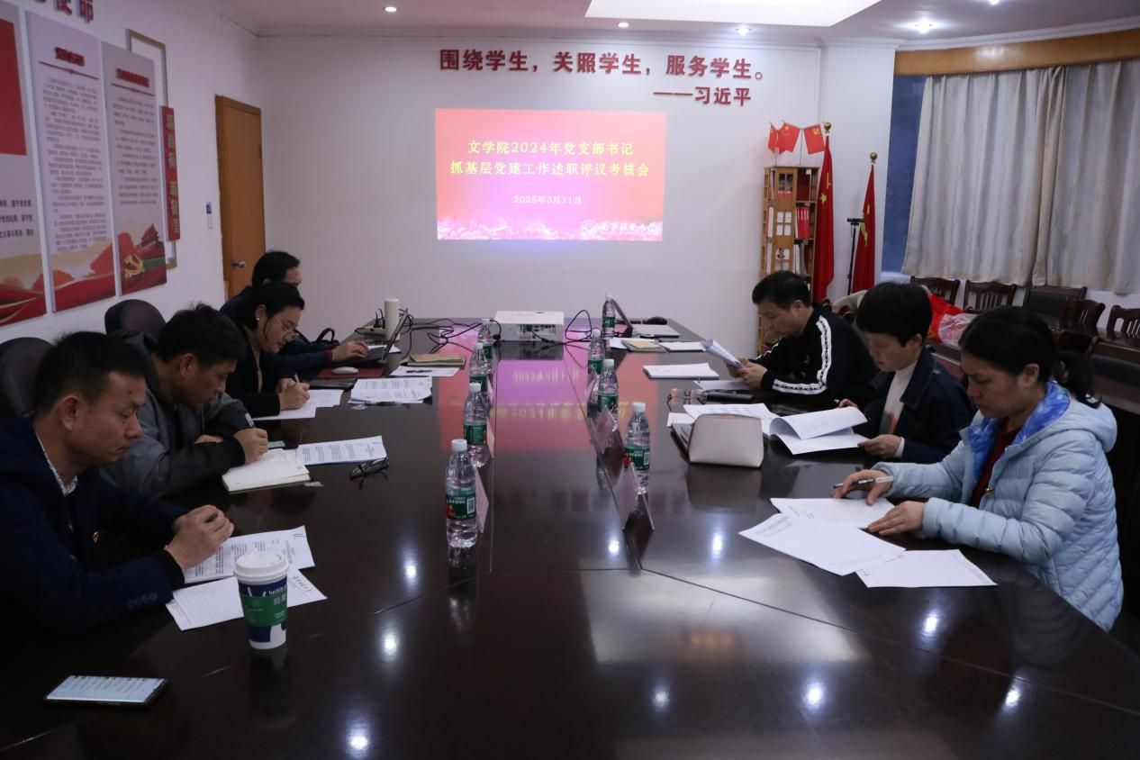 3月11日,文学院2024年度党支部书记抓基层党建工作述职评议会在明秀校区召开。文学院全体党委委员、教工党支部书记参加会议。