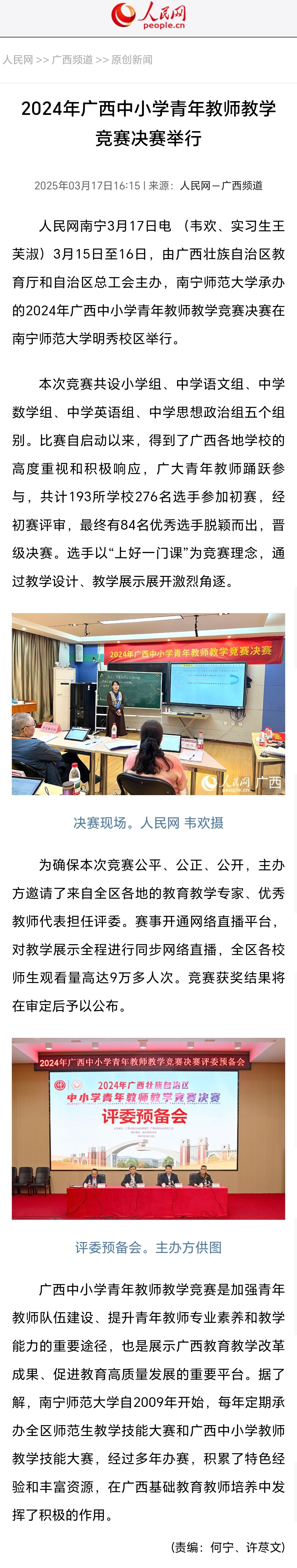 【人民网】2024年广西中小学青年教师教学竞赛决赛举行