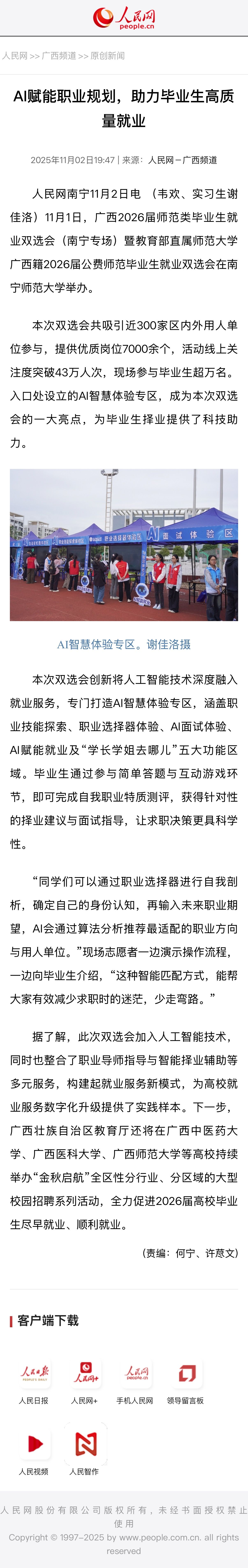 【人民网】AI赋能职业规划,助力毕业生高质量就业