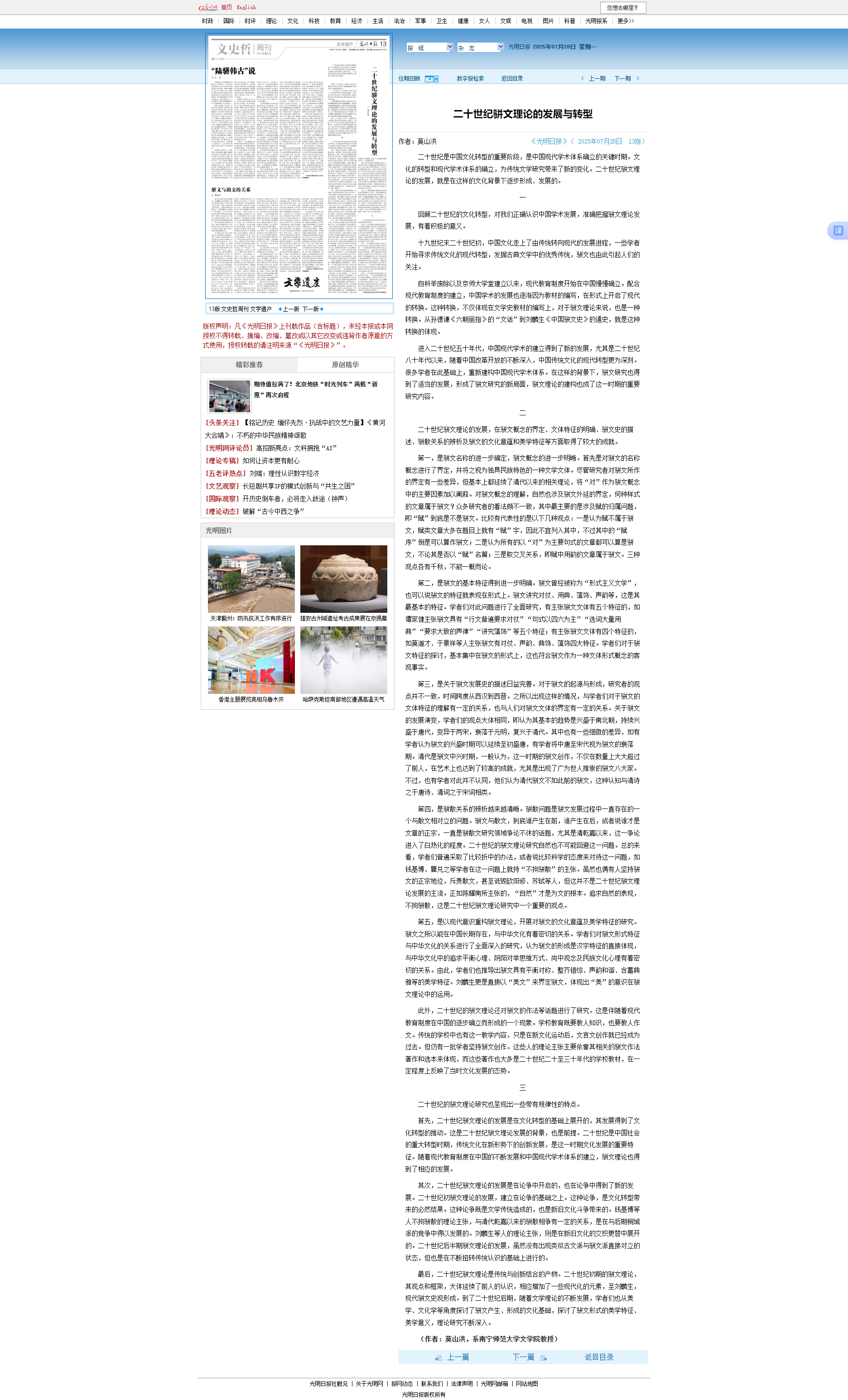 近日,beats365文学院莫山洪教授的理论文章《二十世纪骈文理论的发展与转型》,在《光明日报》(2025年07月28日13版)上发表。这是莫山洪教授在骈文学史领域坚持长期深耕细作的硕果,也彰显了beats365中国语言文学学科建设成效。我们将以此为契机,充分发挥人才引领作用,推动中国语言文学学科深入发展。