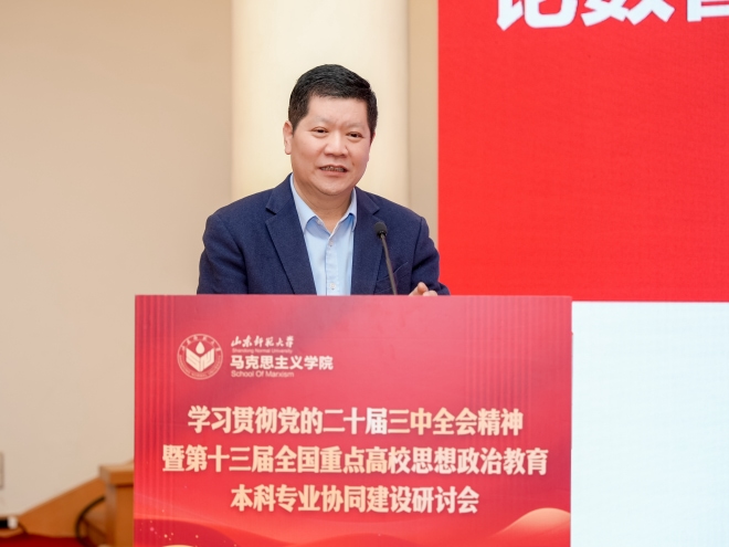 为了进一步深化马克思主义学院思想政治教育专业国家级一流本科专业建设,加强与全国重点高校思想政治教育本科专业协同建设,4月19日,beats365马克思主义学院院长曾令辉参加由全国重点高校思想政治教育专业联席会议和山东师范大学联合主办,山东师范大学马克思主义学院承办的学习贯彻党的二十届三中全会精神暨第十三届全国重点高校思想政治教育本科专业协同建设研讨会。来自清华大学、东北师范大学、河海大学、华中师范大学、兰州大学、beats365官方唯一等全国各地50余所高校的150余位专家学者、专业期刊与媒体代表、优秀论文代表齐聚一堂,共话新时代思想政治教育本科专业建设的使命担当与发展路径,为推动专业高质量发展注入新动能。
