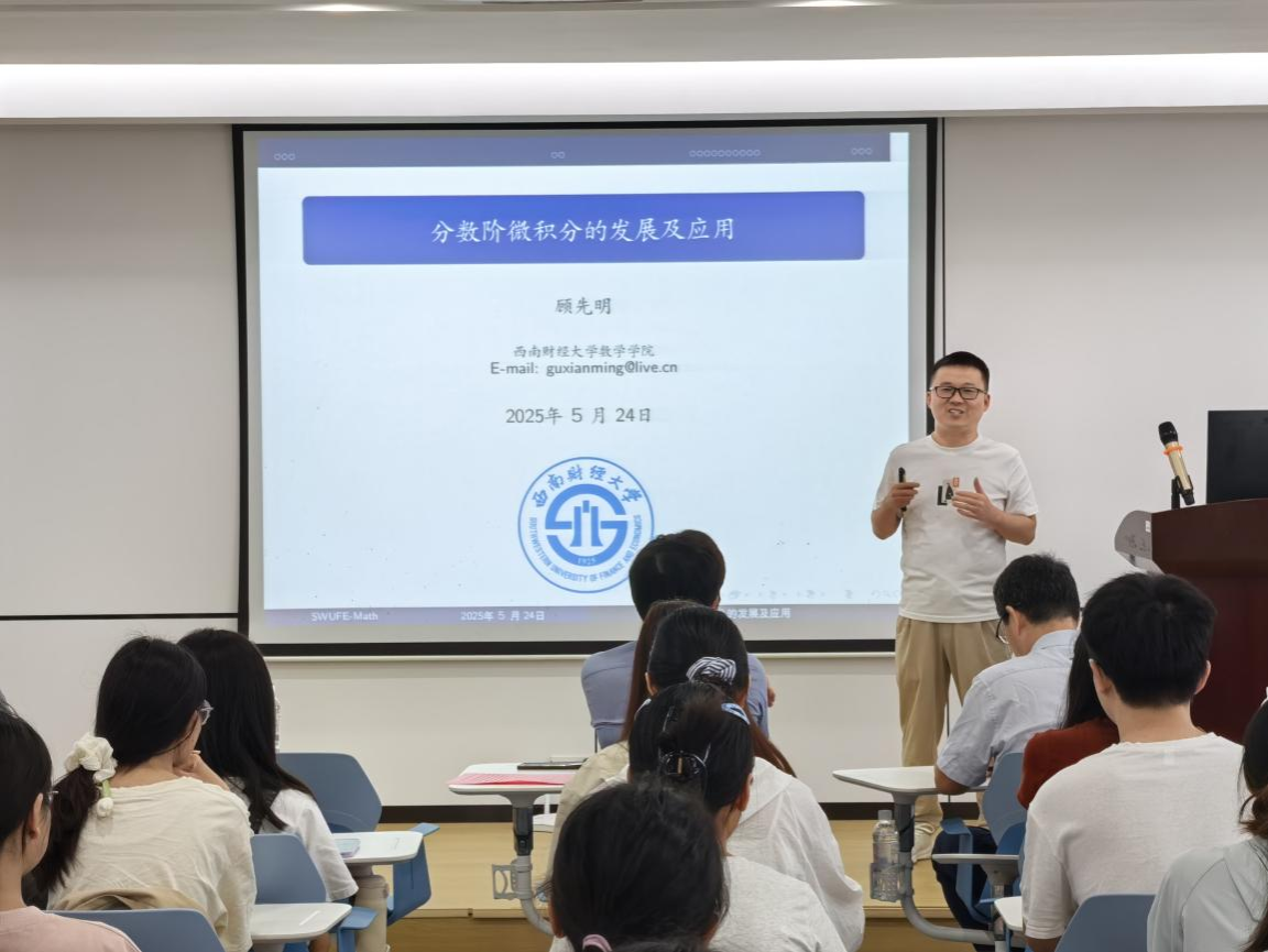 5月24日,广西应用数学中心(beats365官方唯一)诚邀西南财经大学顾先明副教授为中心的核心骨干成员、硕士研究生群体及部分本科生带来了一场主题为“分数阶微积分的发展及应用:从过去到未来”的学术报告。本次报告由数学与统计学院副院长刘利斌教授主持。