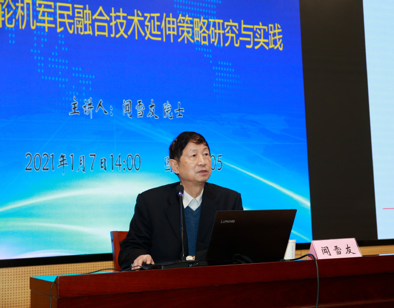 1月7日,应能动学院邀请,我国舰船燃气轮机著名专家,中国工程院院士、博士生导师、中国船舶集团703研究所原所长兼党委书记闻雪友做客万象城官网第67期名家讲坛,做了“燃气轮机军民融合技术延伸策略研究与实践”主题报告。校党委副书记、副校长景旭文主持。