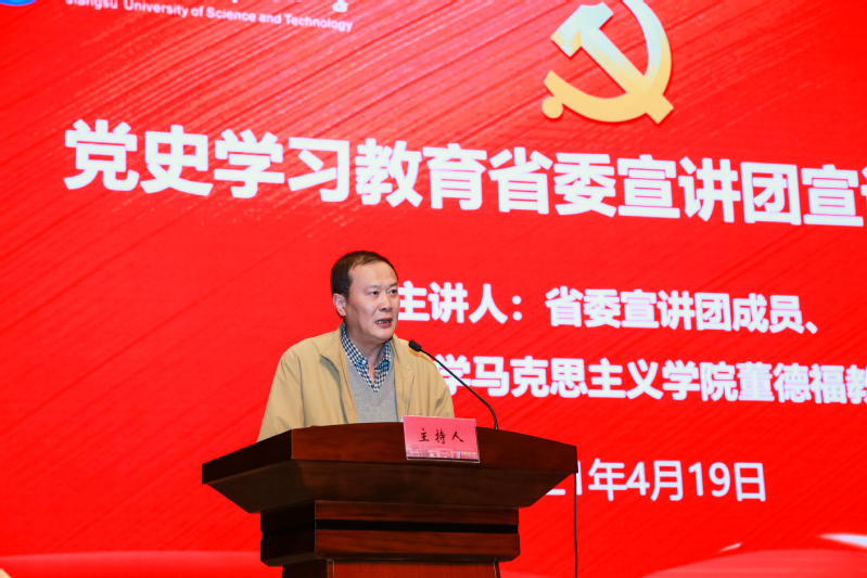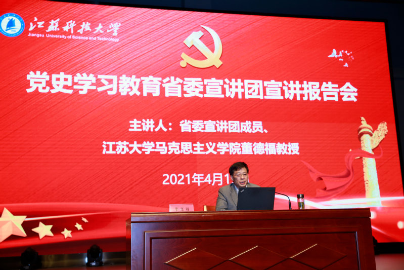 4月19日下午,党史学习教育省委宣讲团在万象城awcsport官网进行宣讲,省委宣讲团成员、江苏大学马克思主义学院教授董德福作宣讲报告。本次宣讲报告主会场设在长山校区船苑剧场,分会场设梦溪校区演讲厅和张家港校区、苏州理工学院文心会堂。校领导周南平、景旭文、许俊华、俞孟蕻、郑培钢、嵇春艳出席报告会。全校科级以上干部、马克思主义学院全体教师、全体辅导员、学生党员、入党积极分子等聆听宣讲报告。党委常委、副校长汤建主持宣讲报告。