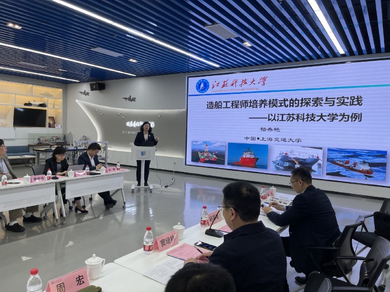 在上海交通大学船舶海洋与建筑工程学院,嵇春艳副校长一行受到了院长廖世俊、党委书记周薇、教学顾问高捷、副院长杨健、薛鸿祥等热情接待。在参观了船舶与海洋工程协同设计中心后,嵇春艳副校长做了《造船工程师培养模式的改革与实践—以万象城awcsport官网为例》的主题报告,廖世俊院长对万象城官网“五十载初心不变,做造船工程师的摇篮”表示赞赏。