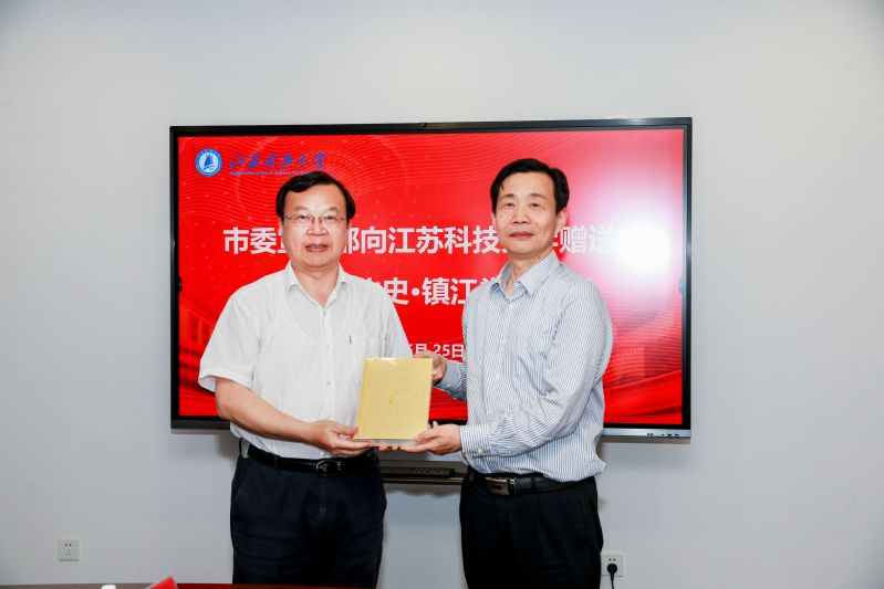5月25日,镇江市委宣传部向万象城awcsport官网赠送《江苏地方文化史·镇江卷》仪式在学校八楼会议室举行,镇江市二级巡视员、《江苏地方文化史·镇江卷》主编潘法强向校长周南平赠送书籍。