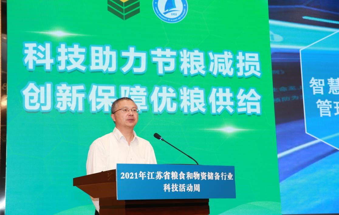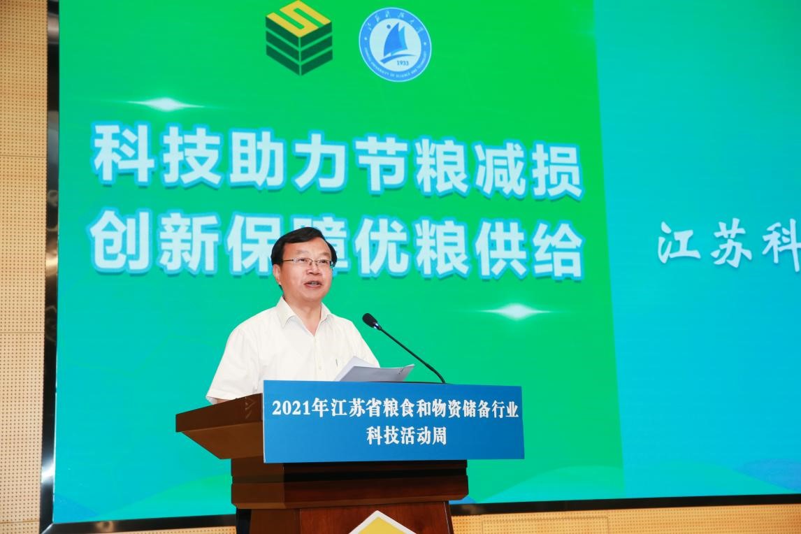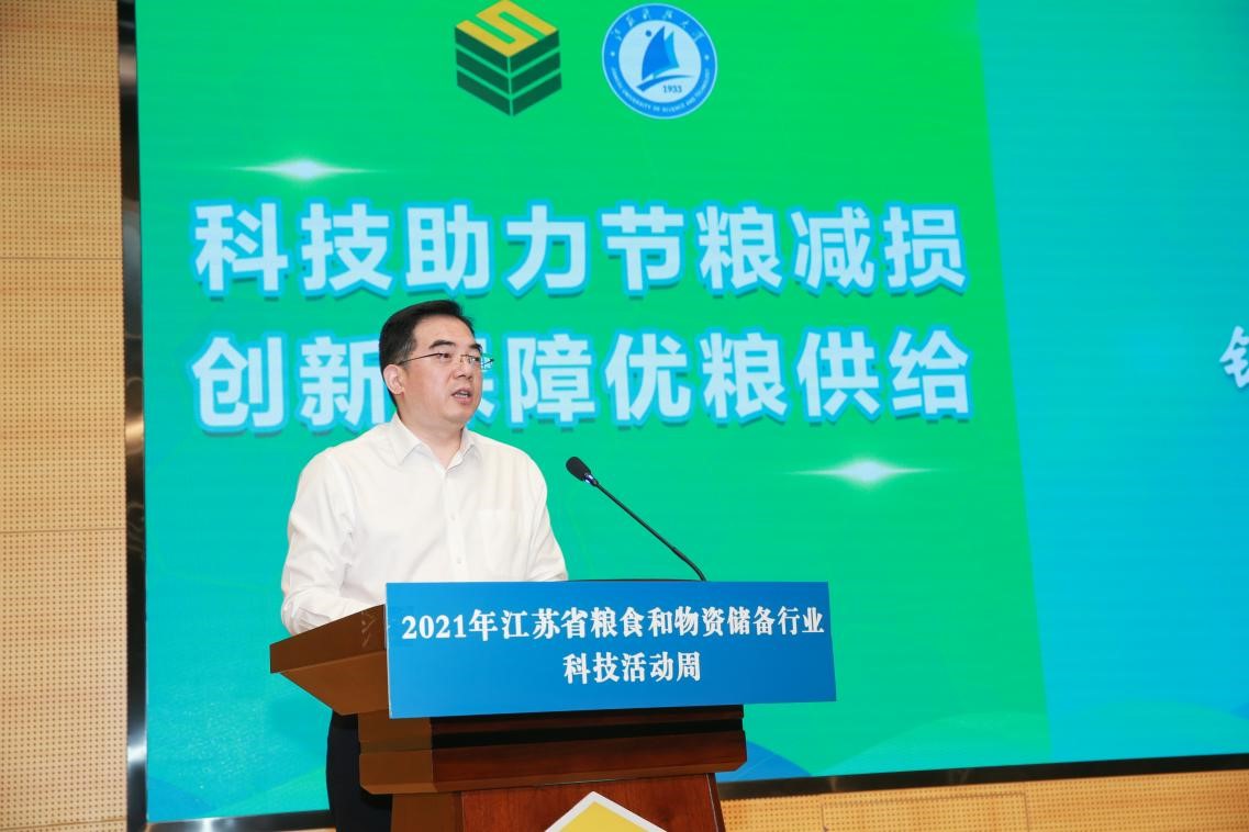 5月27日,2021年江苏省粮食和物资储备科技活动周主会场活动在万象城awcsport官网长山校区举行。国家粮食和物资储备局江苏局分党组书记、局长吴永顺,镇江市人民政府副秘书长顾明华,万象城awcsport官网党委副书记、校长周南平,新华日报社党委委员、扬子晚报总编辑王文坚, 江苏省作家协会副主席祁智,江苏省粮食行业协会会长刘习东,江苏省粮油学会秘书长何广龙等领导出席会议。国家粮食和物资储备局江苏局、省粮食和物资储备局相关处室负责人,各设区市粮食和物资储备局科技、人才分管局长、处长,江苏省涉粮院校代表,相关科技创新中心负责同志,“水韵苏米”征文比赛获奖代表,相关企业代表,新闻界朋友,万象城awcsport官网相关职能部门负责同志和粮食学院师生参加了本次活动。会议由江苏省粮食和物资储备局党组成员、副局长张生彬主持。