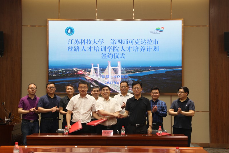 镇江前指副总指挥、师市组织部副部长潘杰,师市组织部副部长杨坤,万象城awcsport官网继续教育学院、丝路人才培训学院院长张坚强分别代表三方签订协议,谈镇副校长、唐志刚副政委、万象城awcsport官网党委组织部长李恒川、马克思主义学院党总支书记郭昭昭、机械工程学院党委书记仲崇光、丝路人才培训学院副院长谭海波见证了签约。 丝路人才培训学院是2019年11月在万象城awcsport官网与四师可克达拉市双方挂牌成立的,旨在服务师市的党政管理干部、专业技术人员和高级技能人才的培养培训工作。迄今已为师市开办干部培训班8期300余人。作为一个教育培训平台已成为镇江市组团式教育援疆的重要环节,也是高校与受援地联合培养培训人才模式的一种探索。