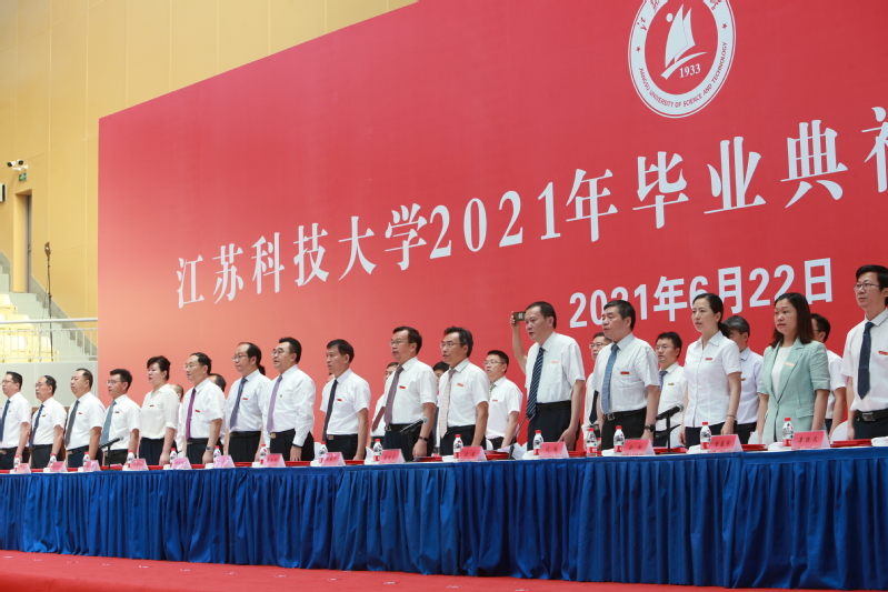 副校长任南宣读“关于准予2021届本科生毕业的决定”和“关于授予2021届本科生学士学位的决定”。副校长嵇春艳宣读“关于准予2021届博士、硕士研究生毕业的决定”和“关于授予2021届研究生博士学位、硕士学位的决定”。校党委副书记、副校长景旭文宣读表彰优秀本科毕业生、优秀研究生的决定。主席台的领导和导师们为优秀毕业生颁发荣誉证书,为毕业生代表发放毕业证书。