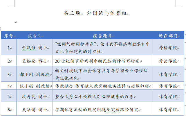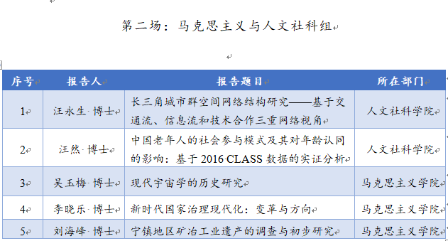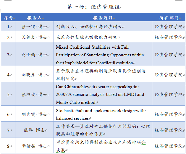 本次学术沙龙分为三场:第一场是经济管理学院组,第二场是马克思主义学院与人文社科学院组,第三场为外国语学院与体育学院组,共有19位青年学者做学术报告。
