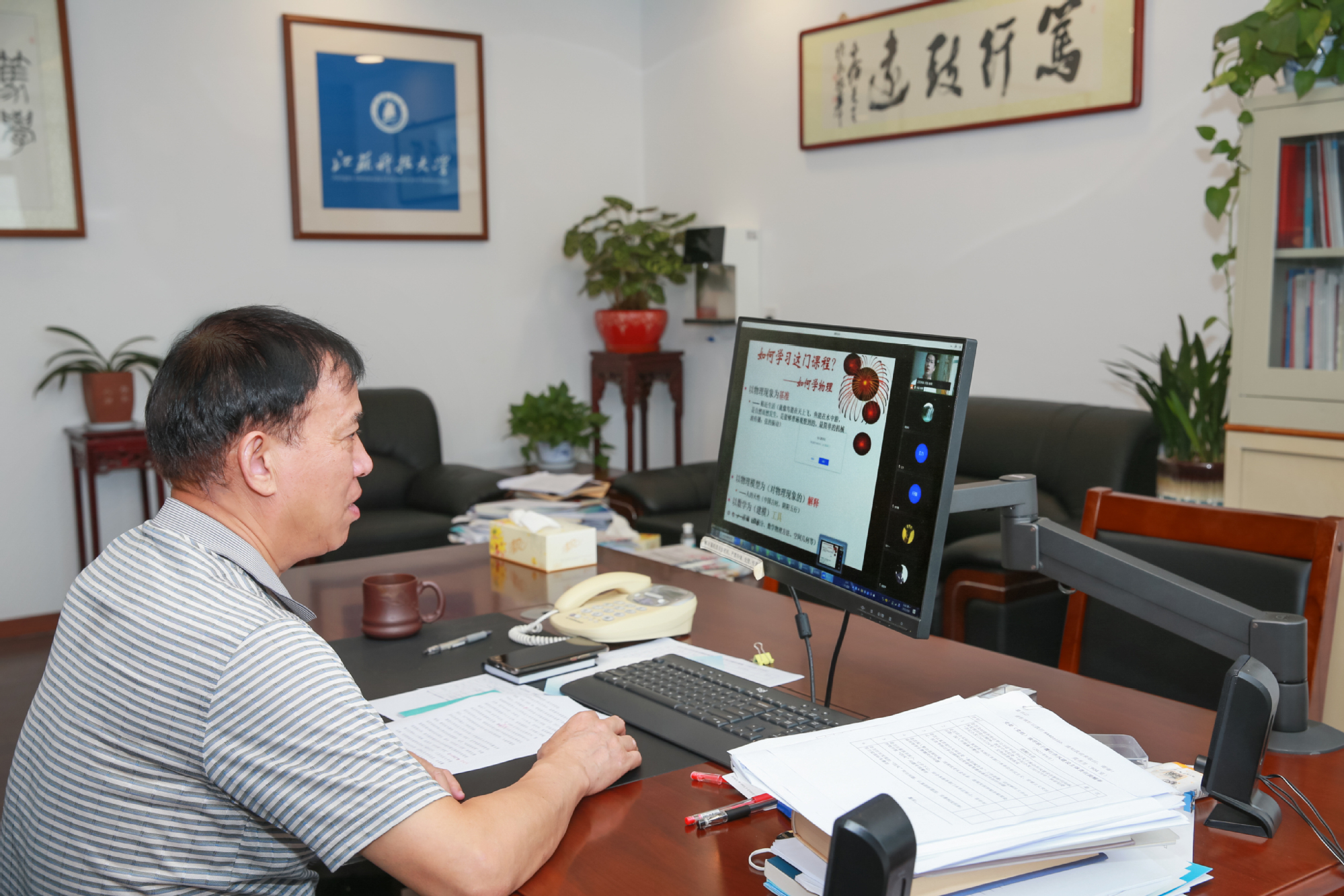 开学首日,校党委书记葛世伦深入多个班级的线上教学课堂,巡查理论课程教学实际开展情况。周南平校长、任南副校长带领教务处、评估处、学生处、信息化建设与管理办公室等部门负责人到学生宿舍,走访了解暑假未离校的部分学生线上学习效果。当天,全校共有464门本科课程开展线上教学。367名教师运用远程教学平台,灵活运用多种适宜的教学方法,进行线上教学和在线辅导,上线学习的学生人数达28455人次。