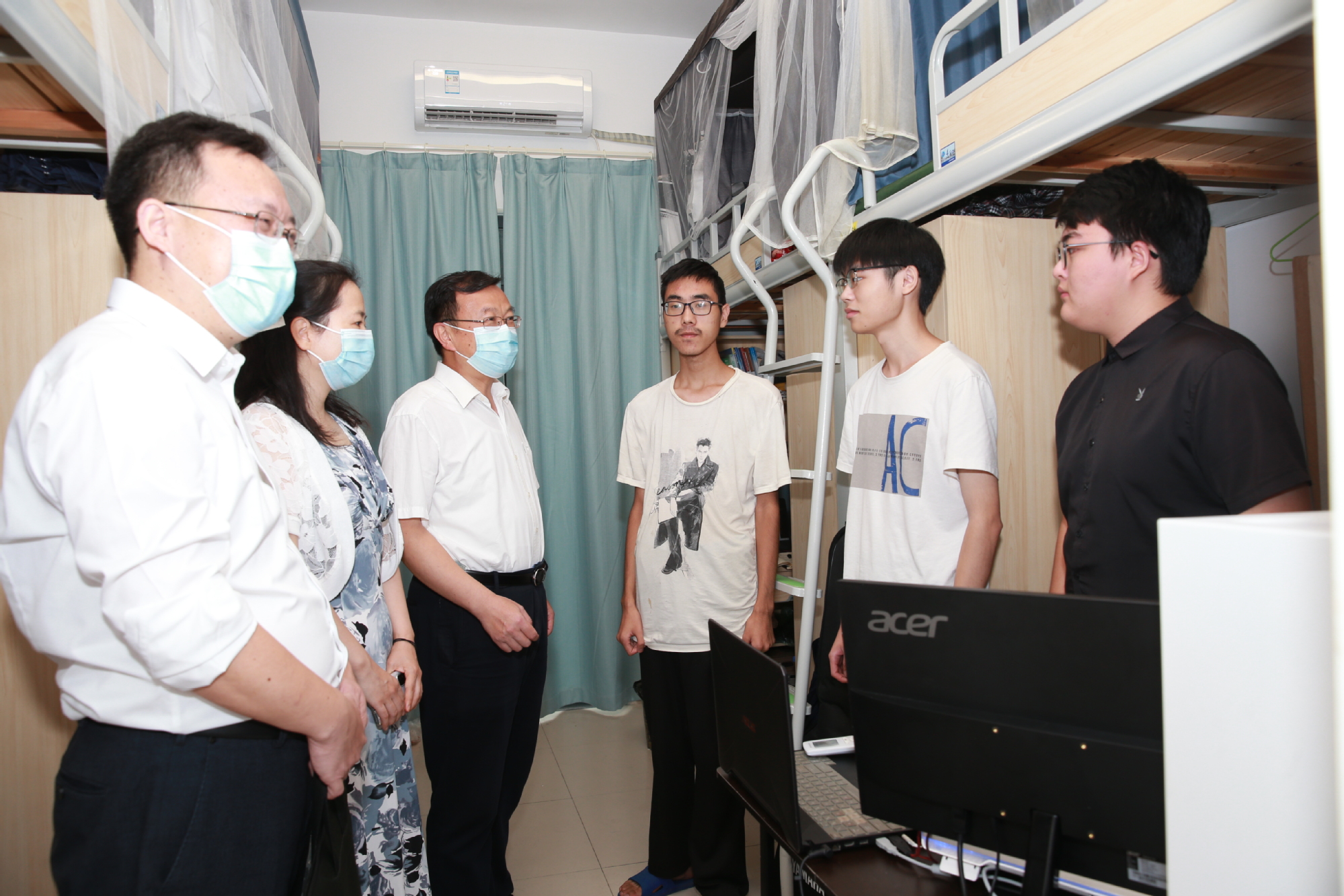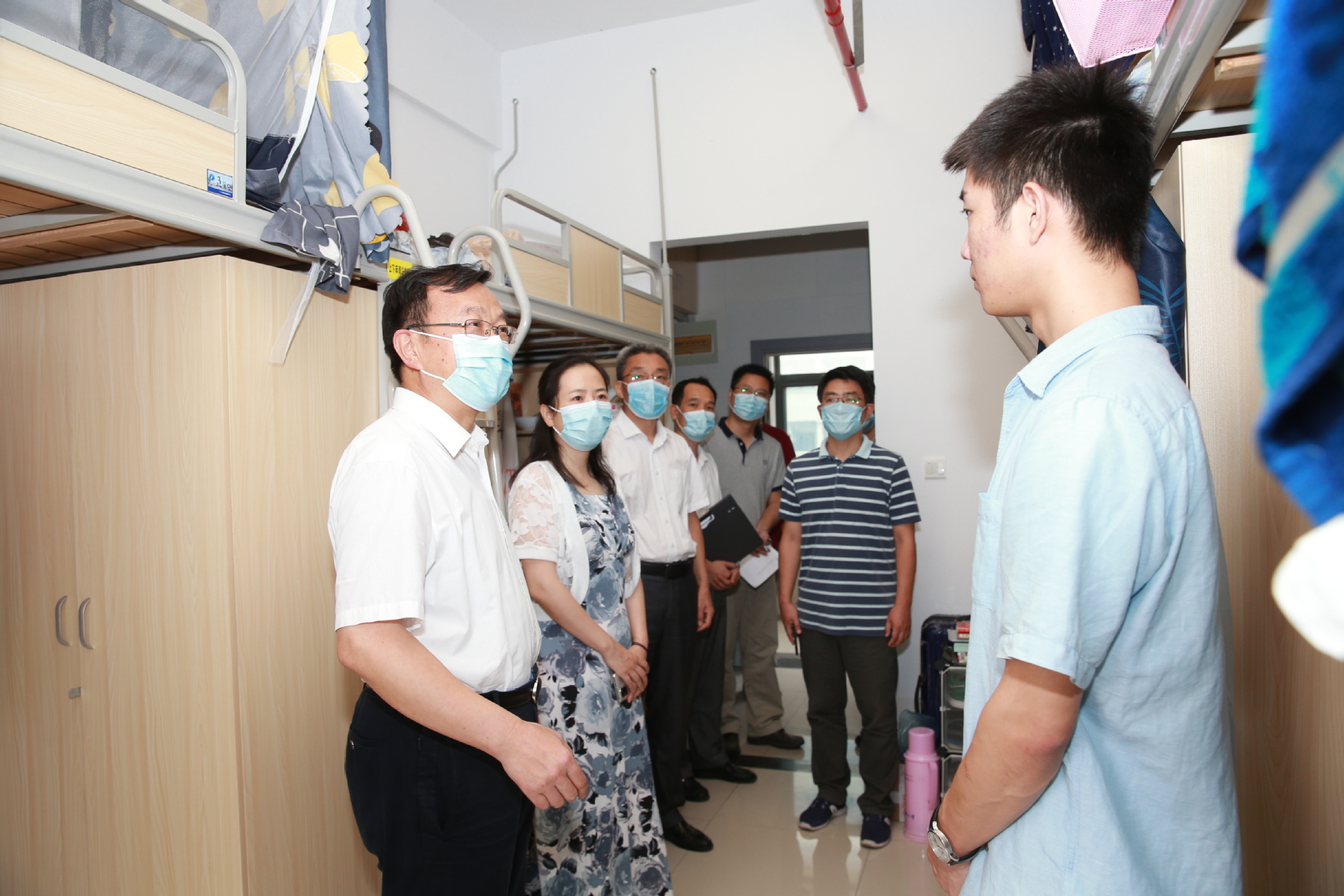 周南平校长强调,在疫情防控常态化形势下,学校有关部门和学院要积极总结线上教学组织工作经验,进一步完善教学支持手段和教学工作规范,充分发挥线上教学优势,保障良好教学效果。在与学生交谈中,周南平校长亲切勉励毕业班学生要珍惜时间,勤奋学习,努力提高学业水平和就业能力。他对暑假期间参加全国航行器大赛取得优异成绩的学生表示赞赏和祝贺,同时预祝即将参加本月举行的全国数学建模竞赛的学生取得理想成绩。
