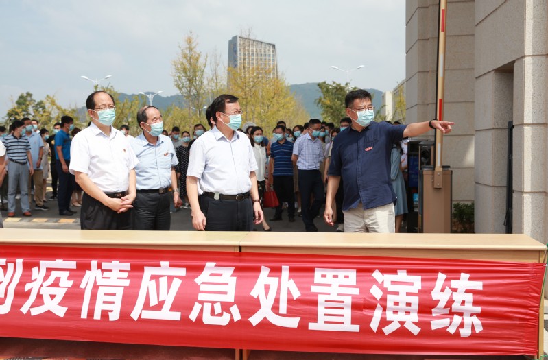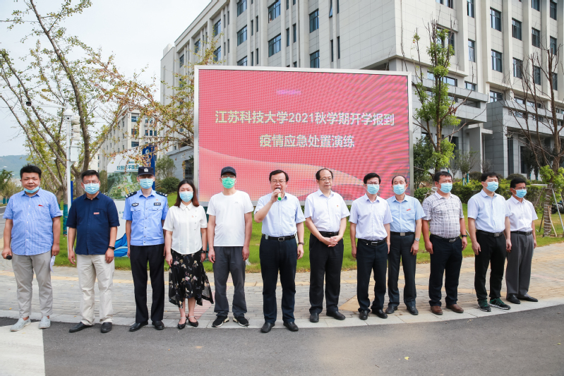 9月14日上午,万象城awcsport官网在长山校区开展2021年秋学期开学报到疫情应急处置演练。校长周南平宣布演练正式开始。校党委副书记许俊华,党委常委、宣传部长周春燕,相关职能部门以及各学院领导观摩演练,镇江市教育局、卫生监督所、派出所等有关人员现场指导,学生处副处长徐晶主持演练。
