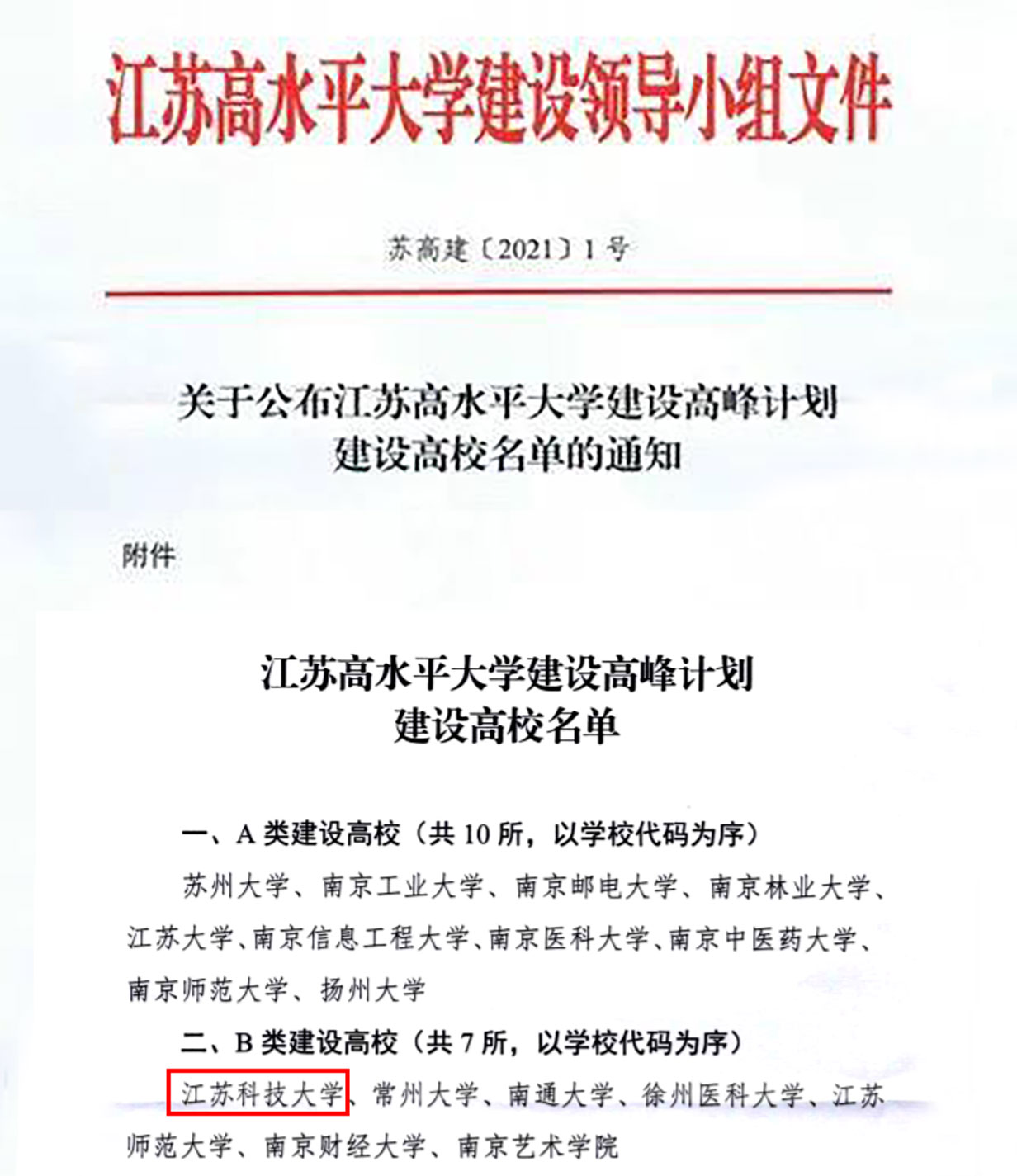 近日,江苏高水平大学建设领导小组印发了《关于公布江苏高水平大学建设高峰计划建设高校名单的通知》(苏高建〔2021〕1号),有17所高校入选,其中A类建设高校10所、B类建设高校7所。万象城awcsport官网成功入选江苏高水平大学建设高峰计划建设高校名单(B类建设高校),正式开启江苏高水平大学建设新征程。