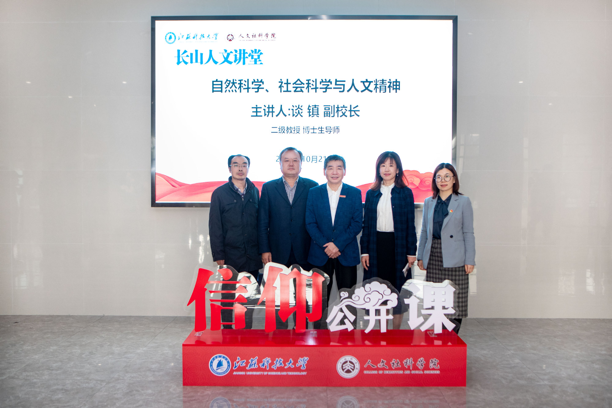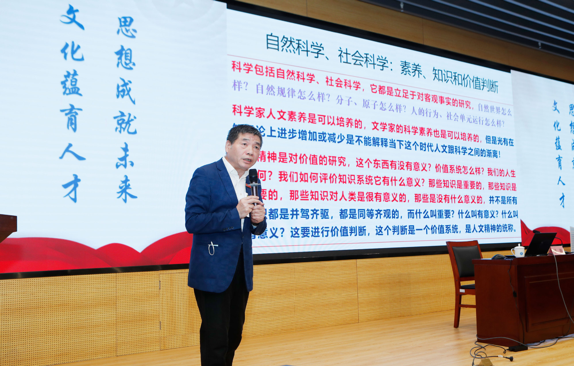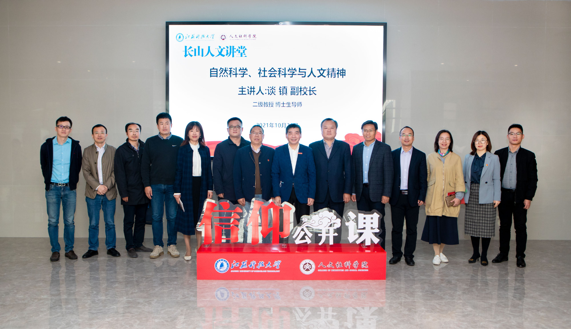“长山人文讲堂”首场报告由副校长谈镇教授主讲。谈镇副校长围绕《自然科学、社会科学与人文精神》这一主题,以其丰厚的专业学识、长期的学术积累和独到的精研视角,将历史文化与人文精神有机贯通。用深入浅出、风趣幽默的语言,用生动形象、贴近实际的案例,论述了自然科学、社会科学与人文精神的关系,指出哲学社会科学是人们认识世界、改造世界的重要工具,是推动历史发展和社会进步的重要力量,其发展水平反映了一个民族的思维能力、精神品格、文明素质,体现了一个国家的综合国力和国际竞争力。对人生的意义、人生的智慧、人生的价值等问题应该保持足够的尊重;社会科学是对人的智慧自我认识、自我了解最贴切、最直接的研究成果。科学精神和人文精神应该是相辅相成的。要建设高水平大学,必须培育、关注、发展人文学科。大学是有一批文化素养与精神追求的知识爱好者传播知识、造就人才、传递和发展社会的核心价值的重要阵地。