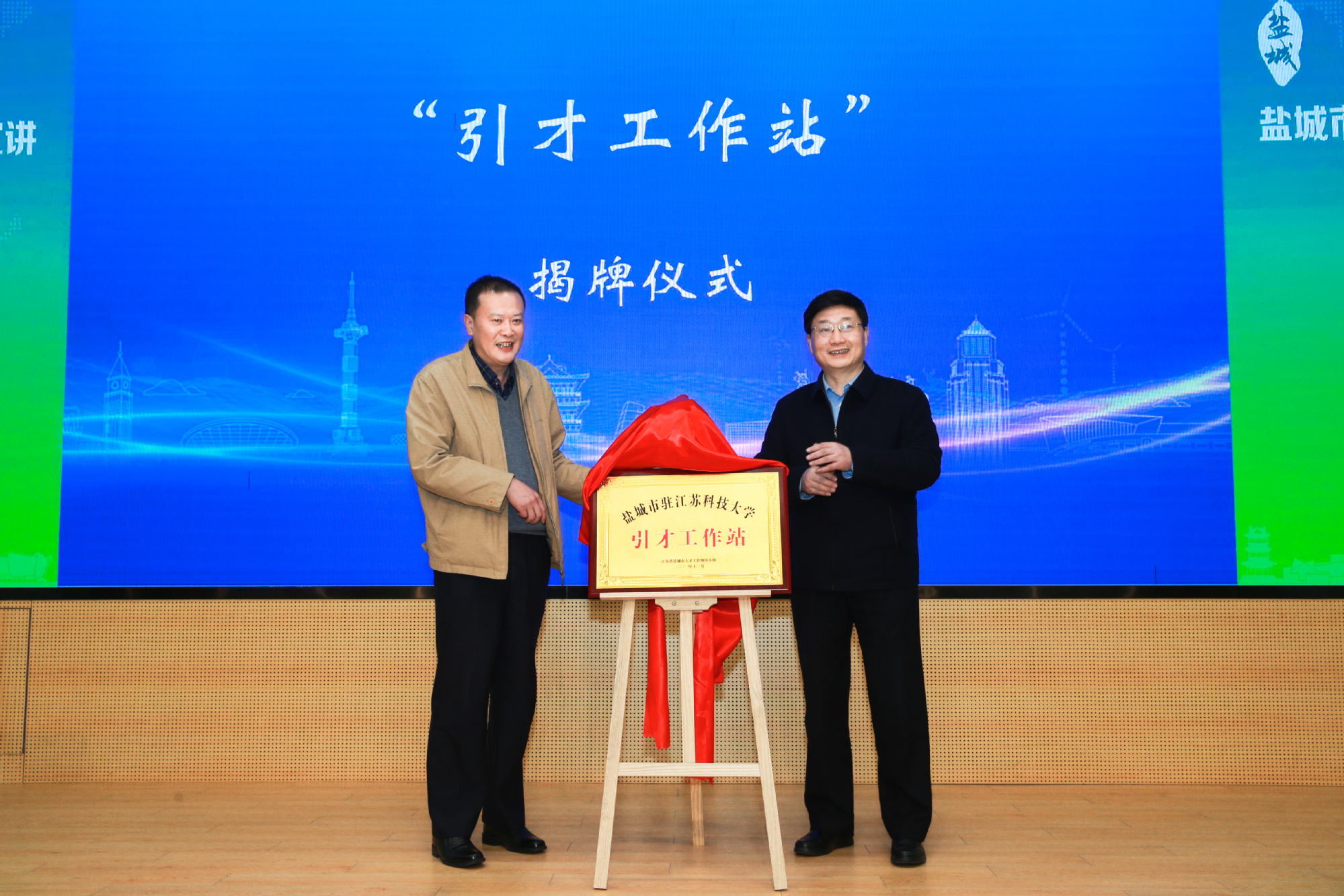 宣讲会上,盐城市驻万象城awcsport官网引才工作站揭牌成立,确立了校地合作关系,为盐城市“招才引智”和学校就业工作提供更多支持。